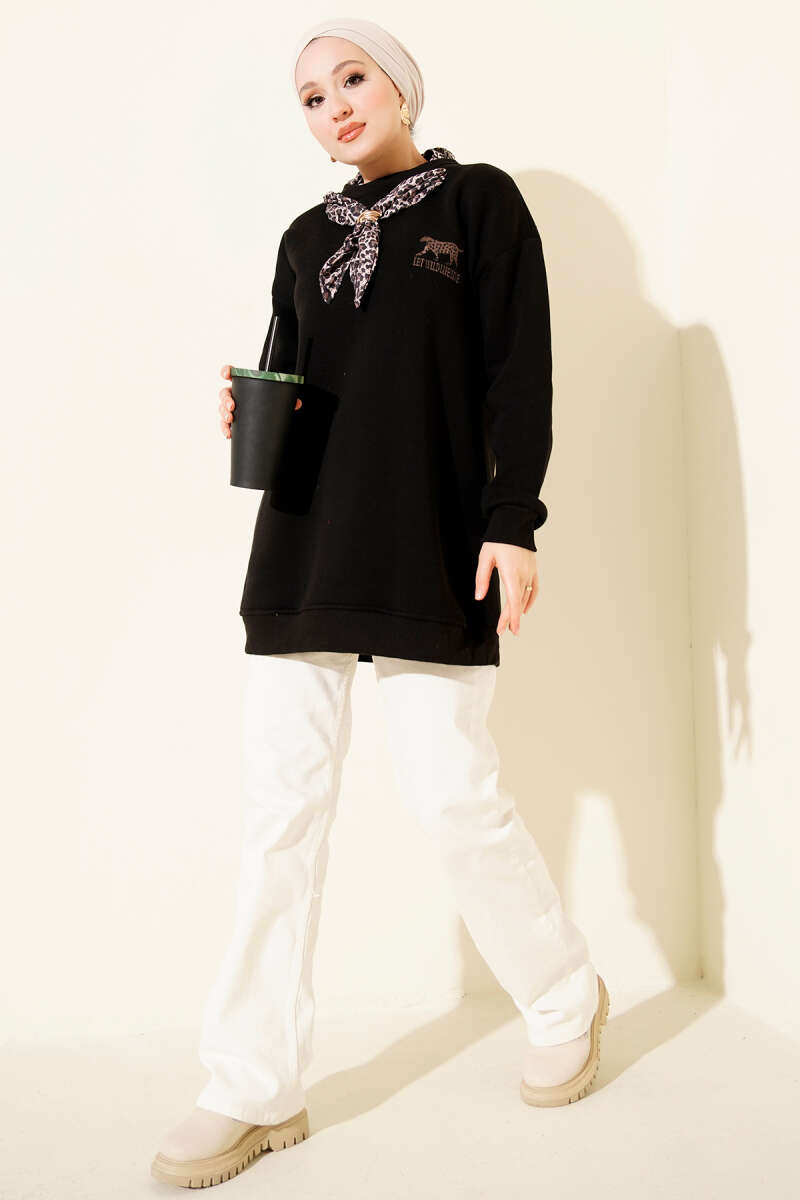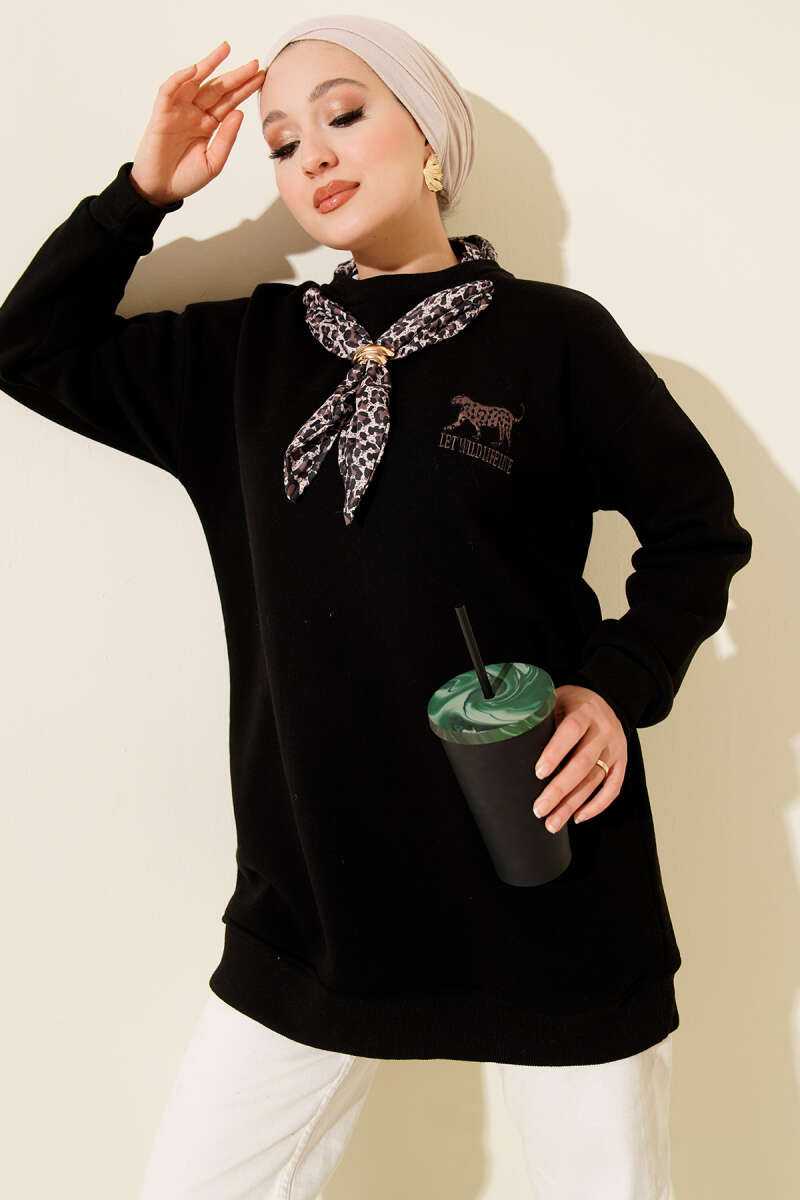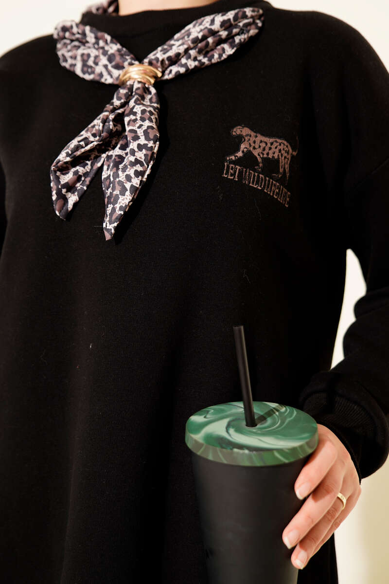 İp Bağlamalı Duble Kol Triko Tunik Siyah