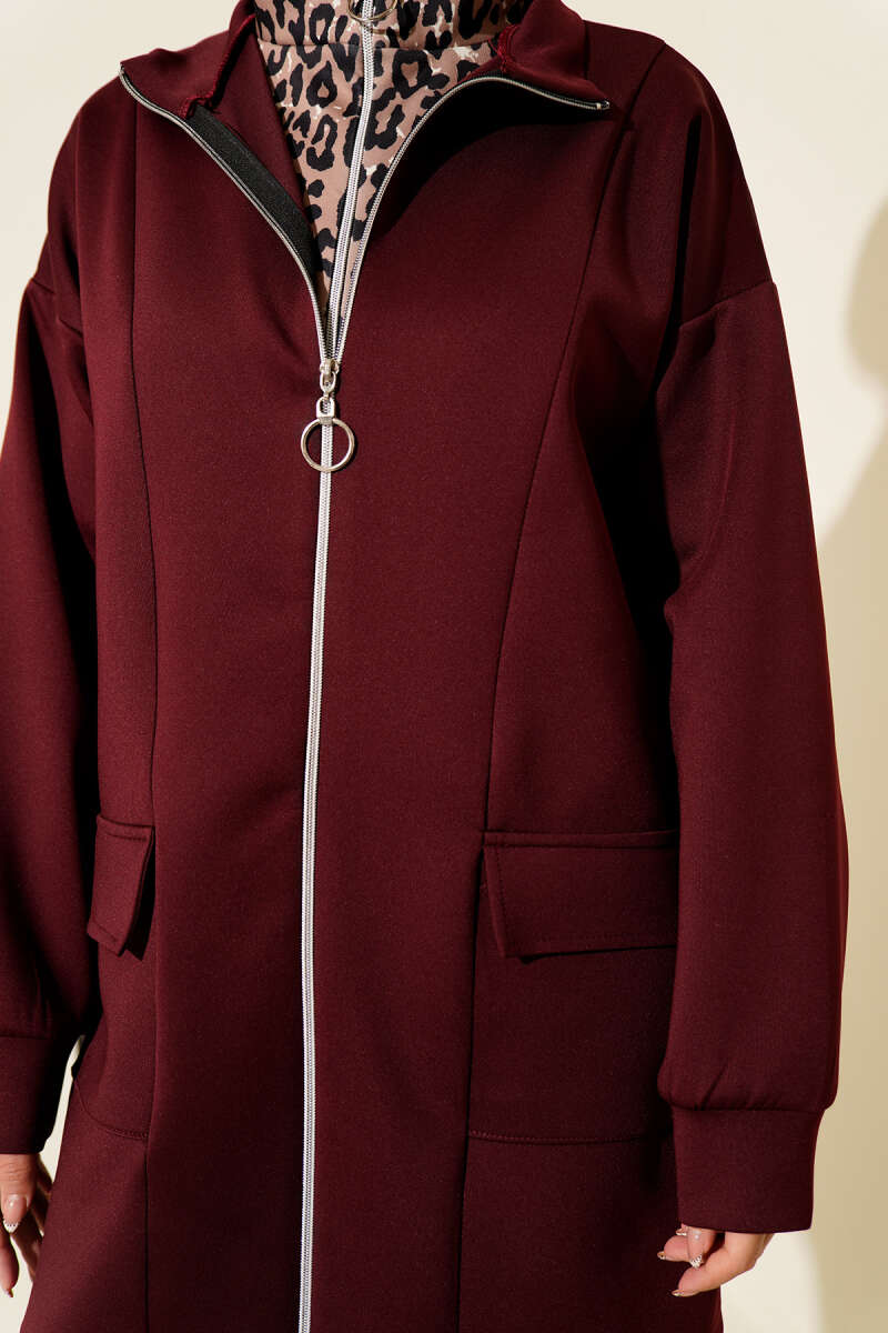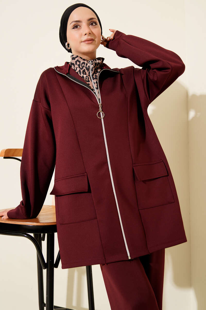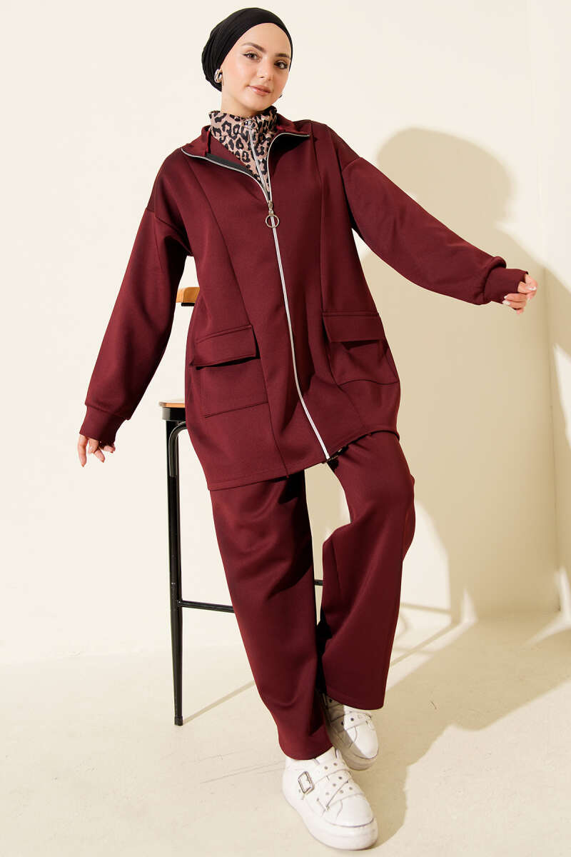 Göğüs Cep Kapaklı Fermuarlı Scuba İkili Takım Bordo