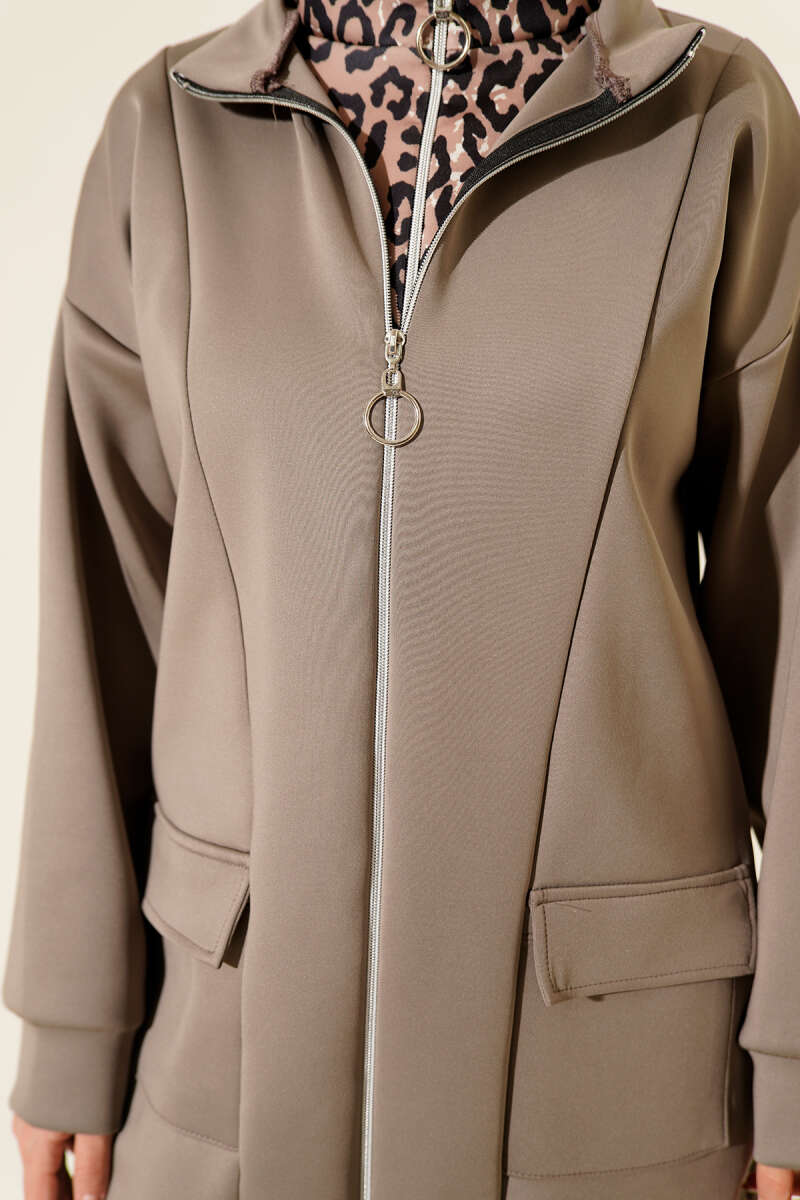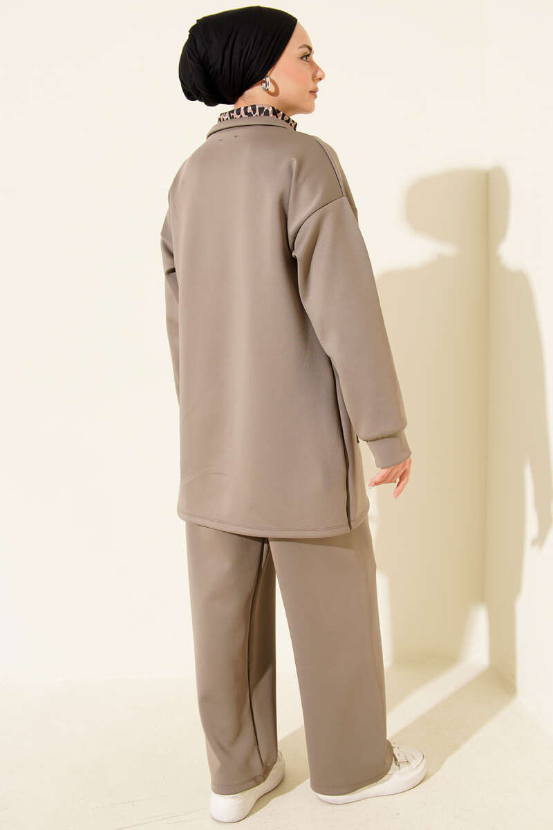 Metal Düğmeli Fermuarlı Scuba İkili Takım Vizon