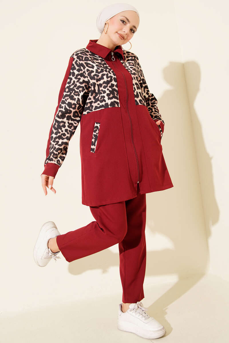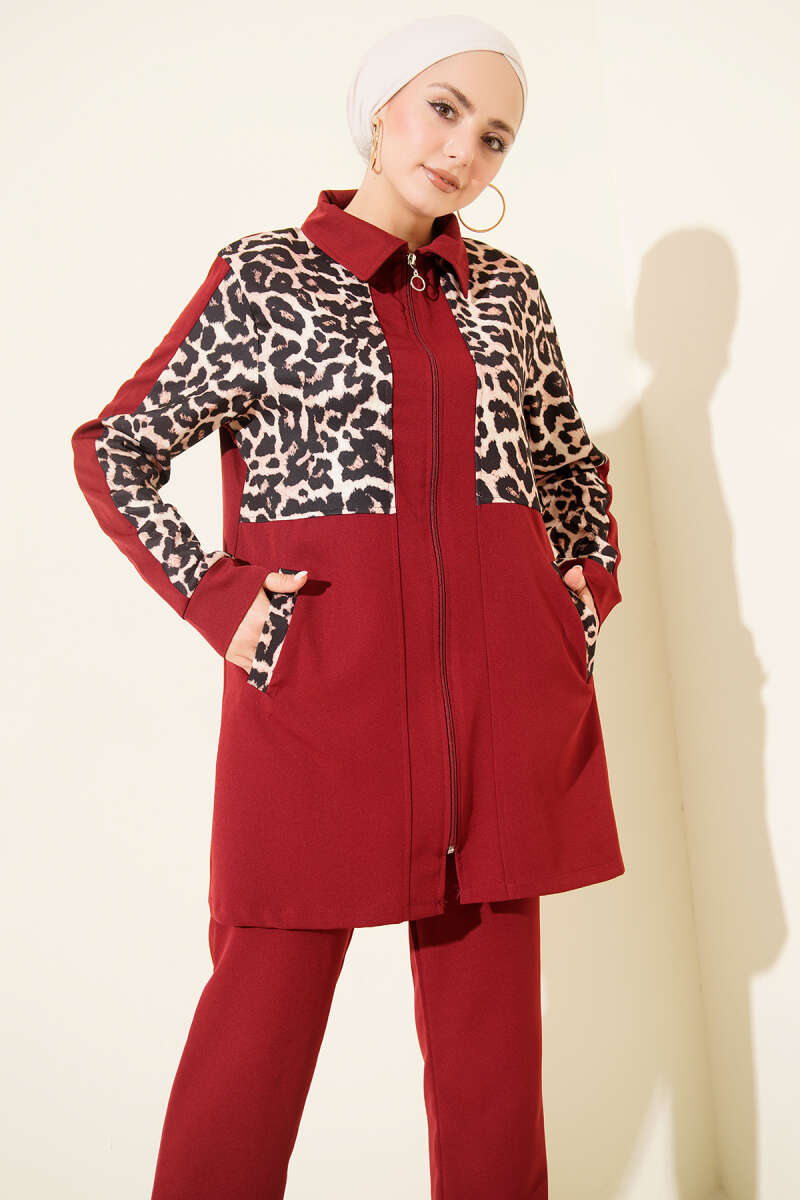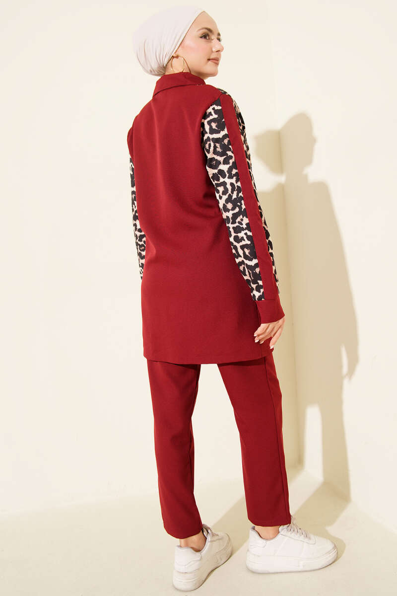 İp Kuşaklı Etekli Tensel İkili Takım Bordo