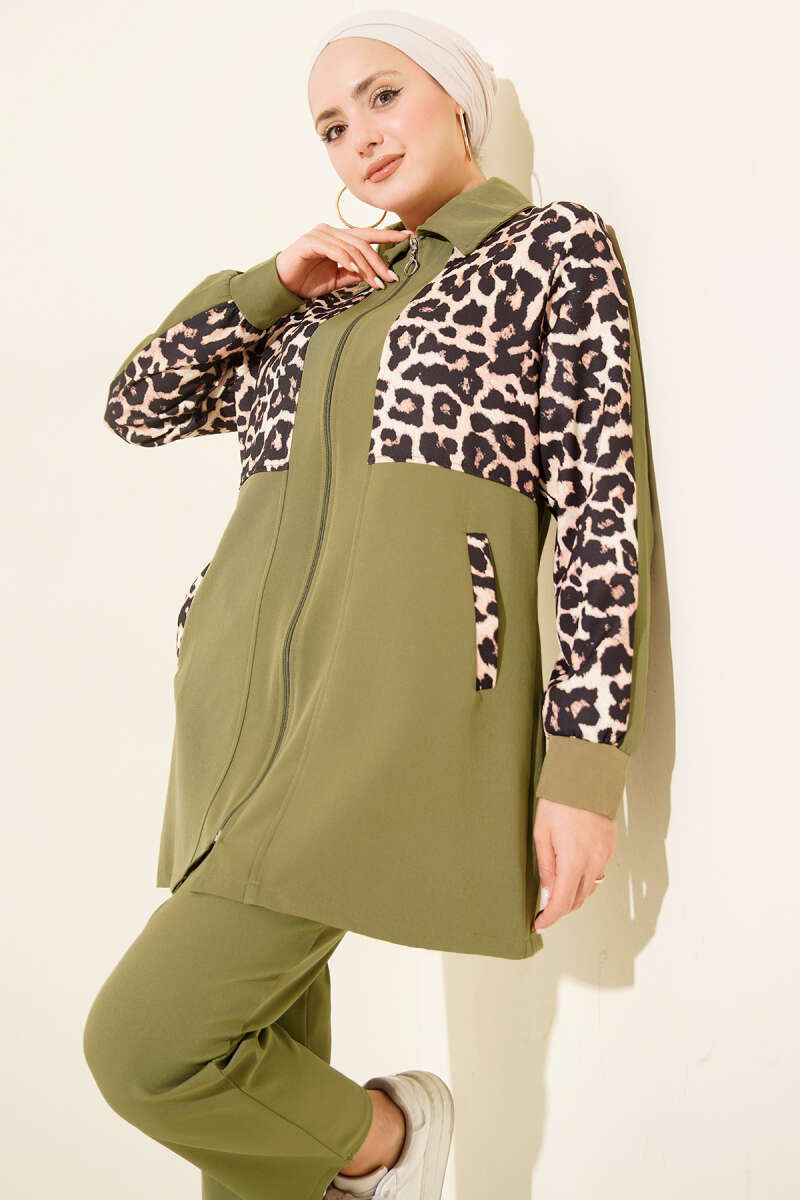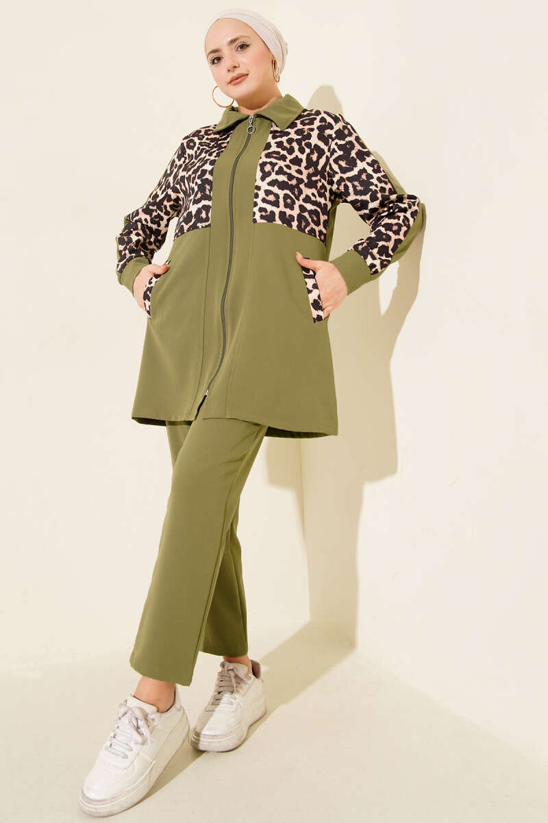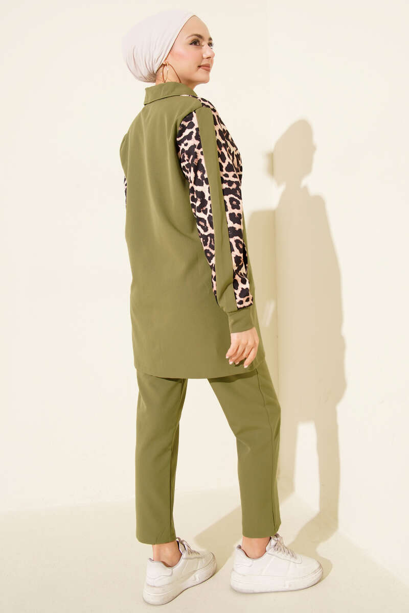 Çift Cepli Leopar Garnili İkili Takım Lacivert