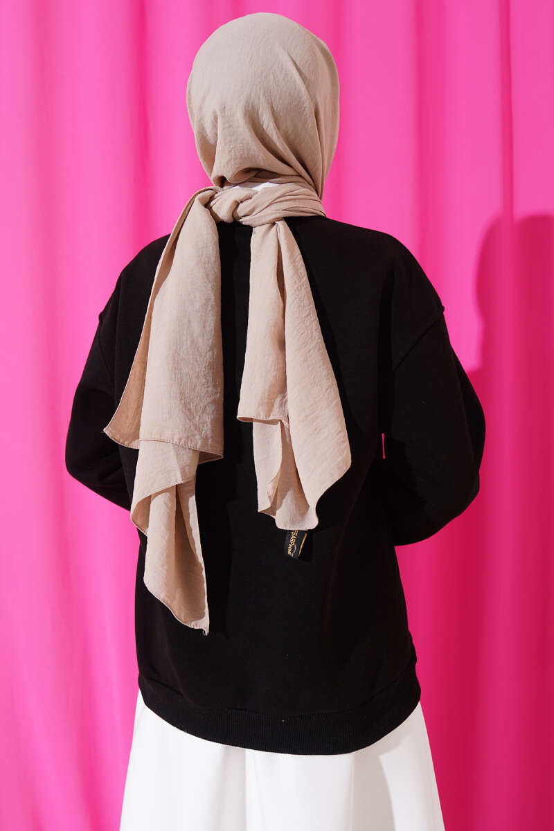 Üç İplik Yarım Çıtçıtlı Sweatshirt Siyah