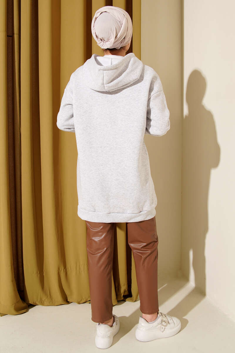 Boğazlı Örgü Kabartmalı Triko Tunik Füme