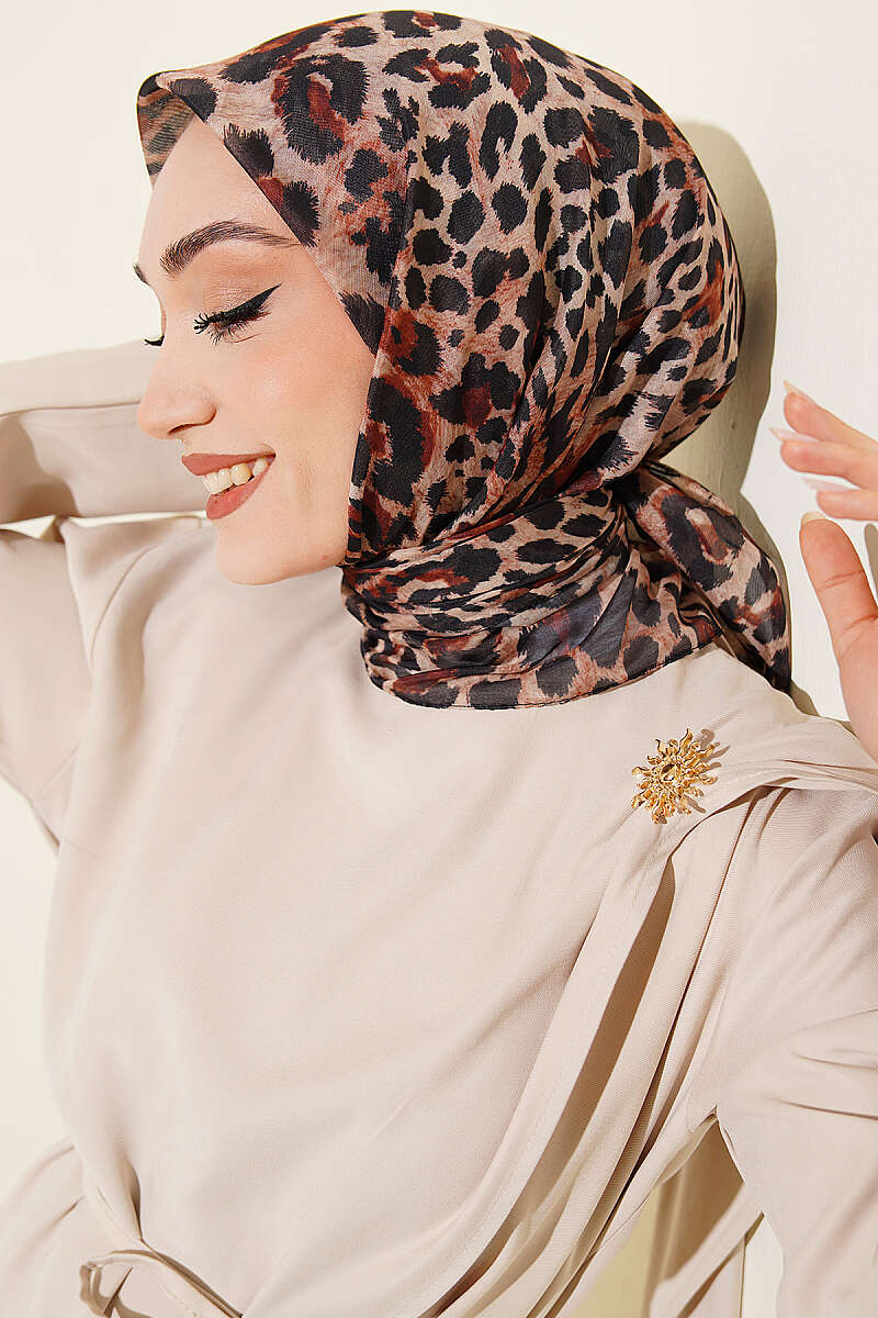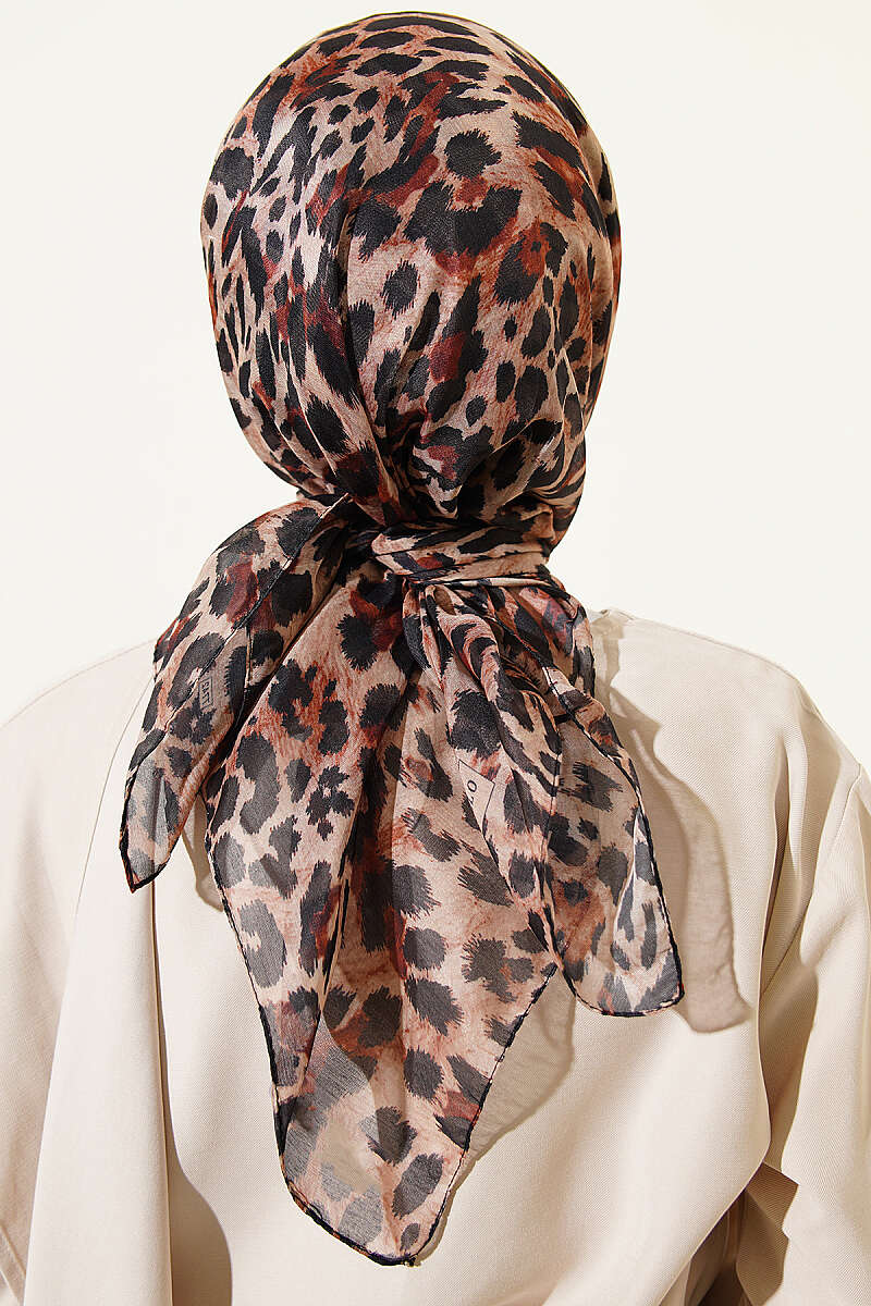 Karışık Desen Bambu Kraş Ayda Eşarp Kahve