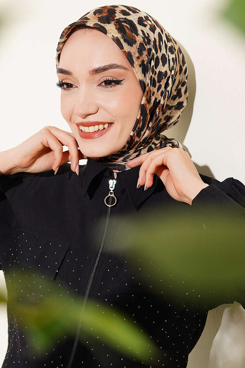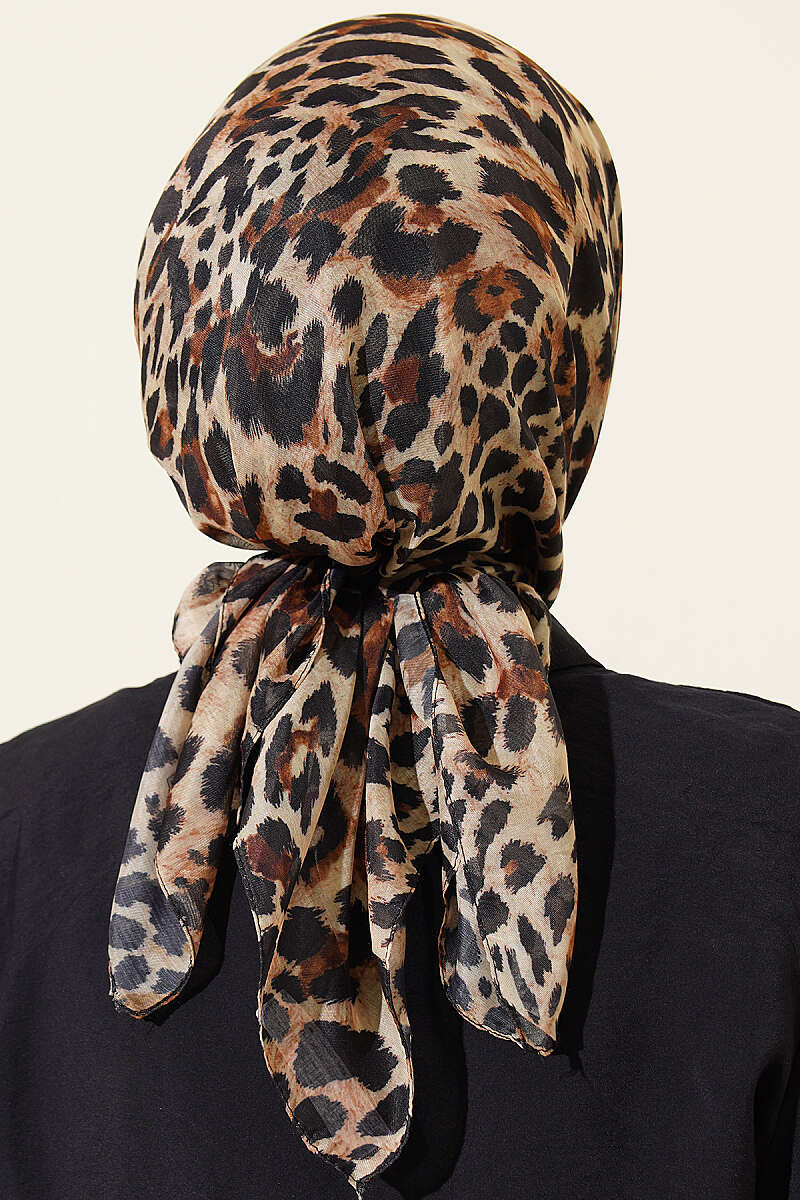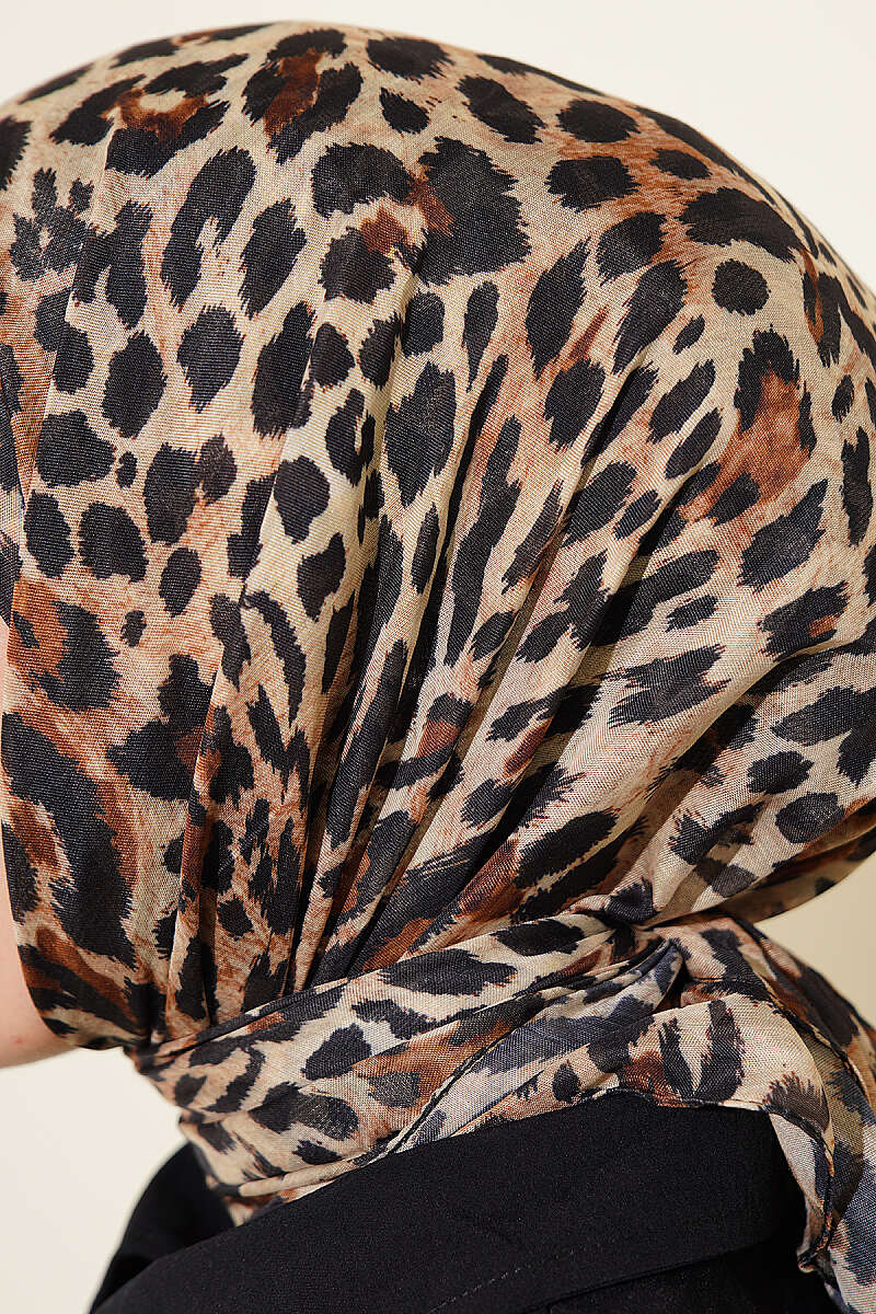 Karışık Desen Bambu Kraş Ayda Eşarp Soft Kahve