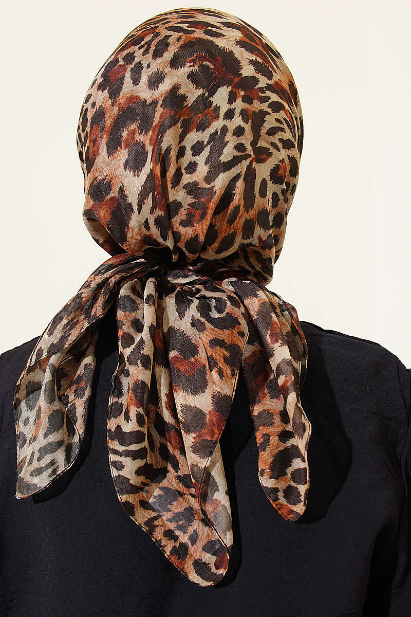 Karışık Desen Bambu Kraş Ayda Eşarp Kahve