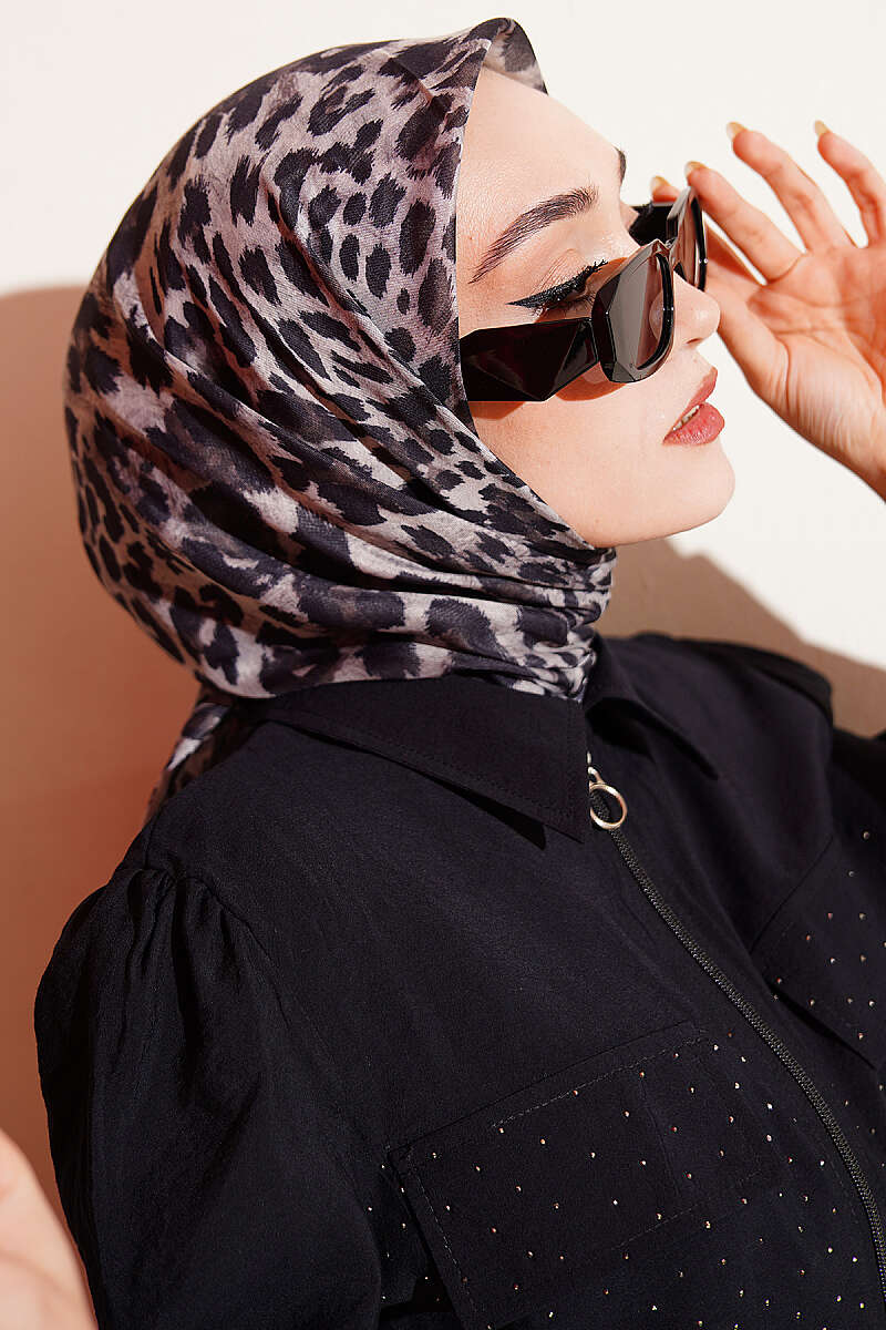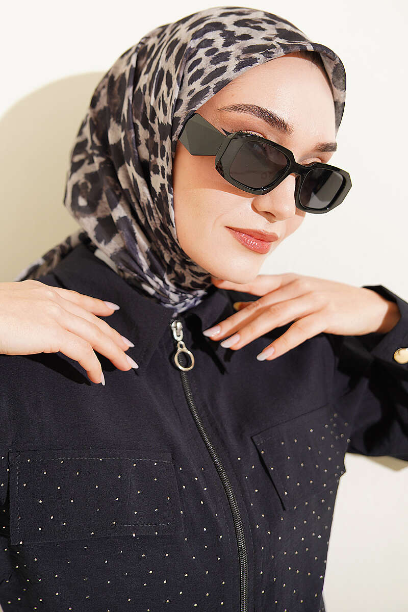 Karışık Desen Bambu Kraş Ayda Eşarp Gri