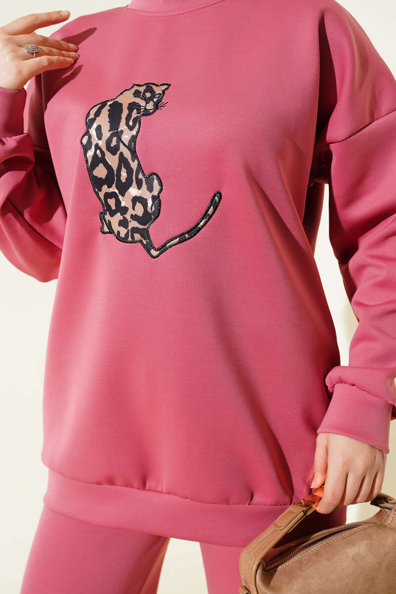 Leopar Desenli Triko Tunik Siyah