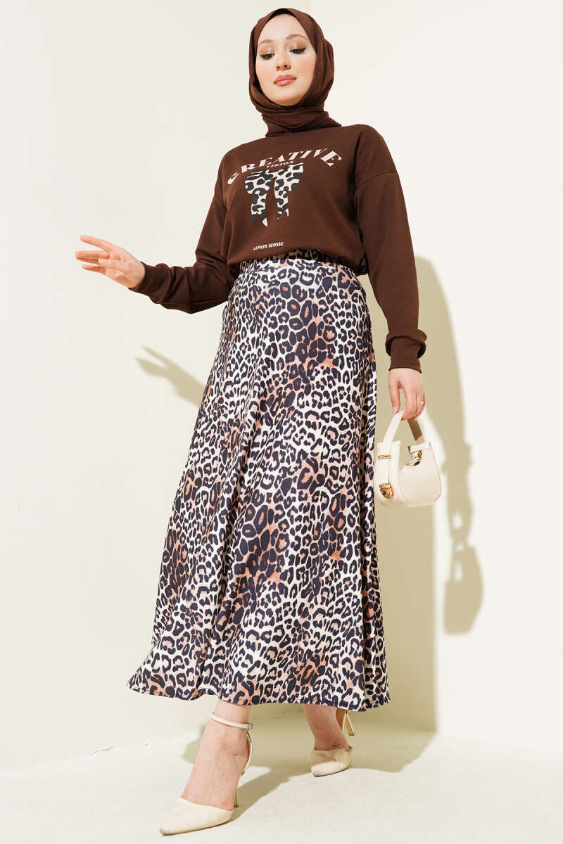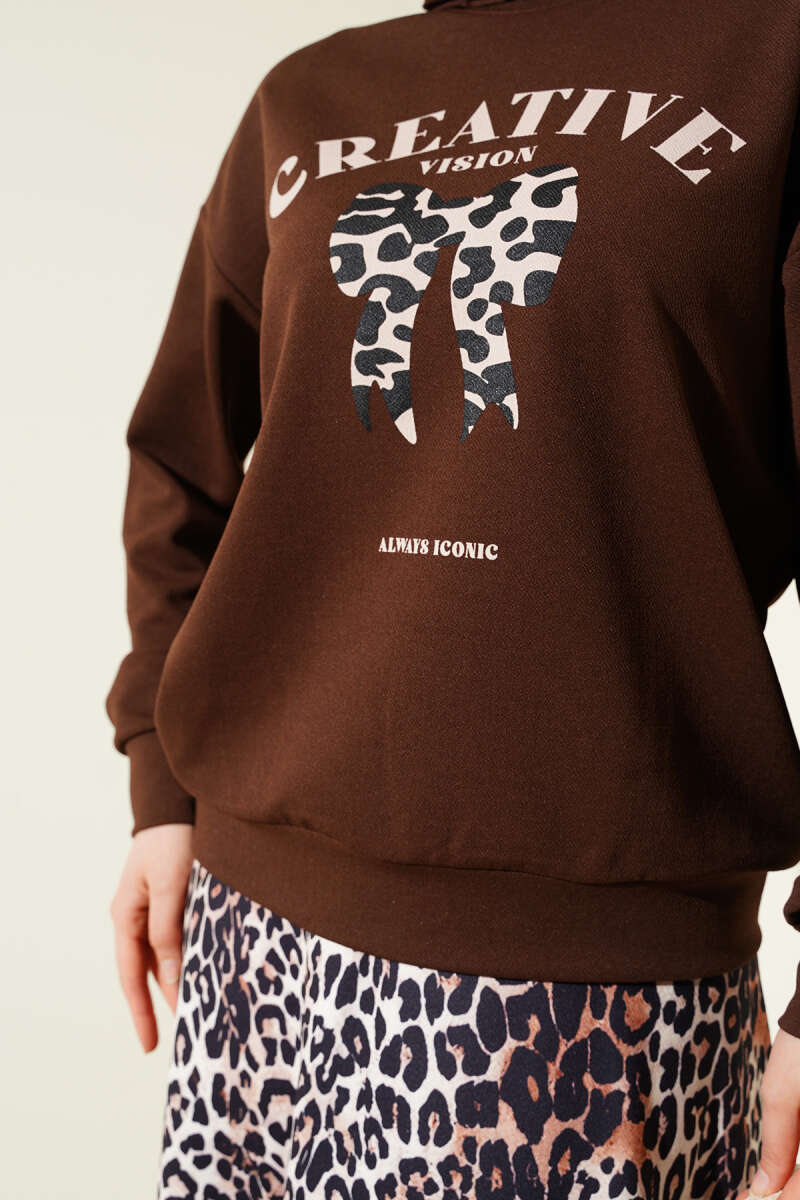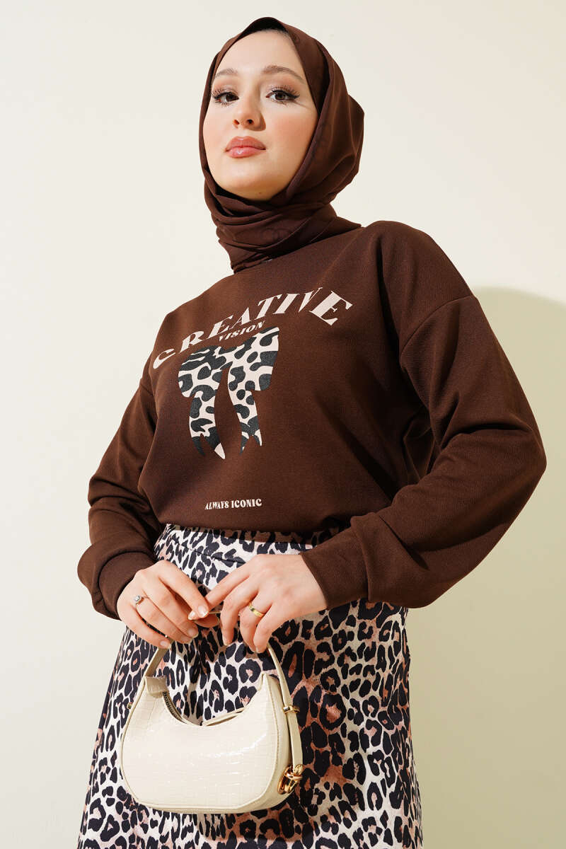 Asimetrik Kesim Bisiklet Yaka İkili Takım Kahve
