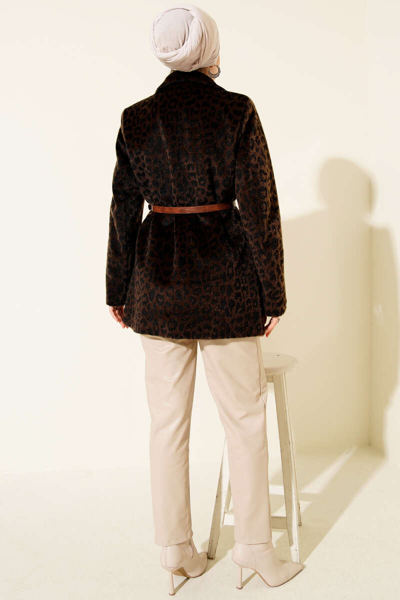 Leopar Desenli Yan Bağlamalı Goldfox Ceket Acı Kahve
