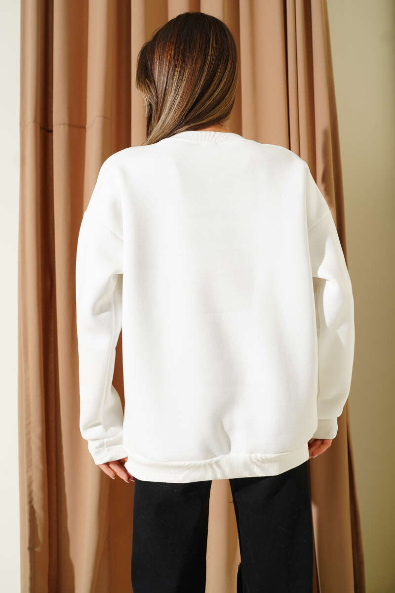 Fular Detaylı Üç İplik Sweat Ekru