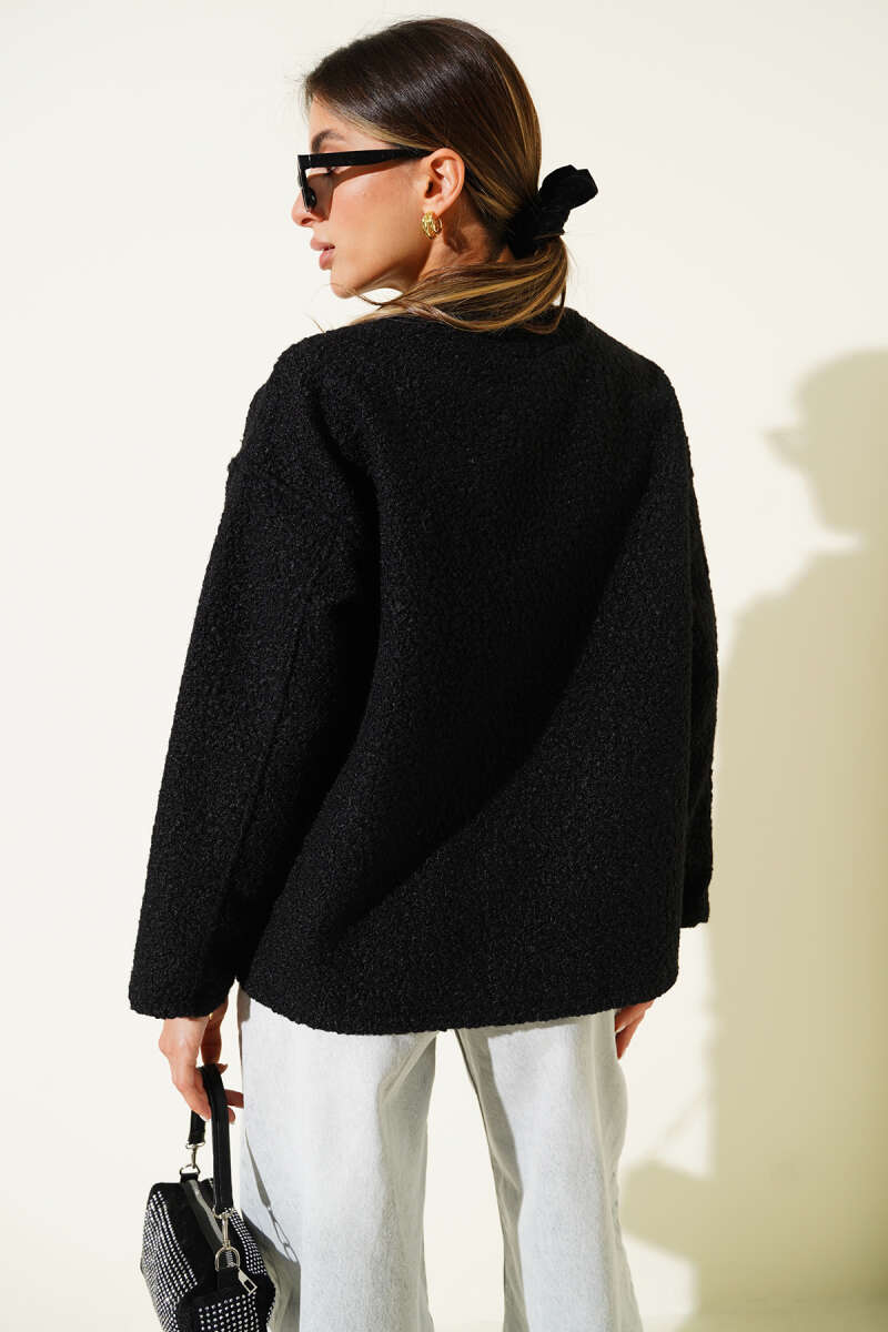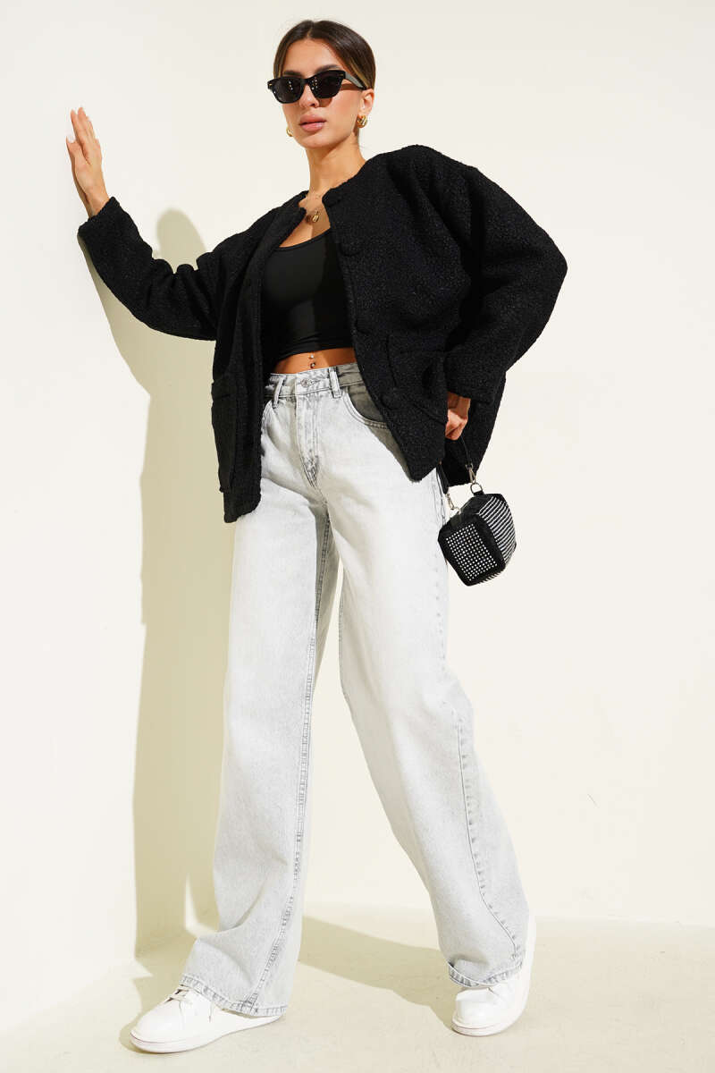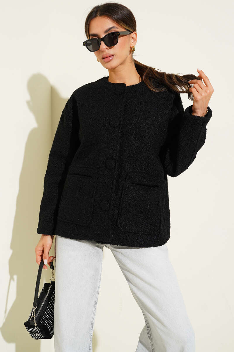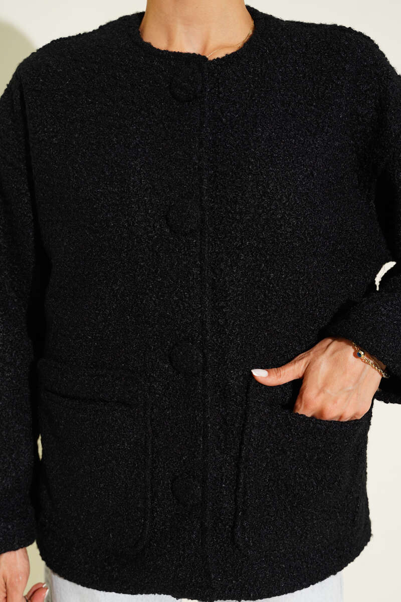 Ön Düğmeli Cep Detaylı Mont Siyah