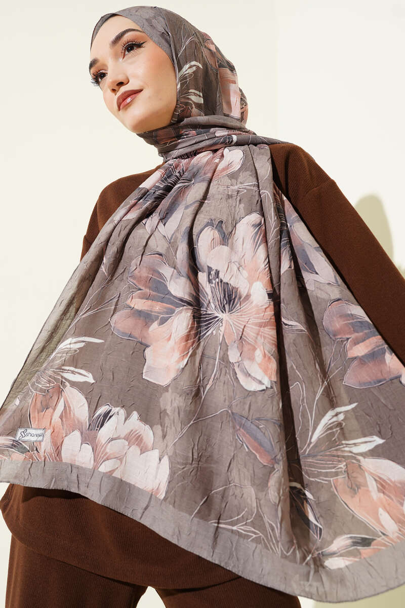 Yaprak İşlemeli Şal Soft Kahve