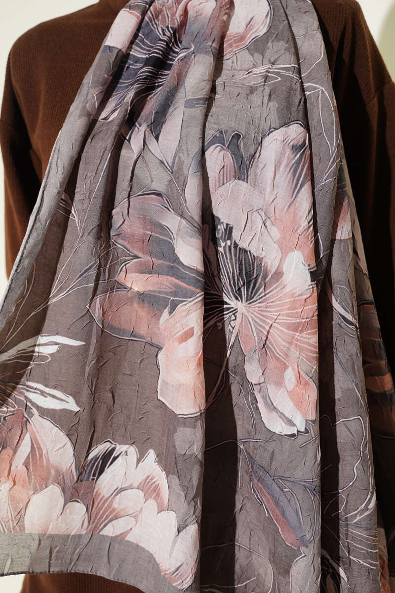 Lilyum Desen Bambu Kraş Şal Latte
