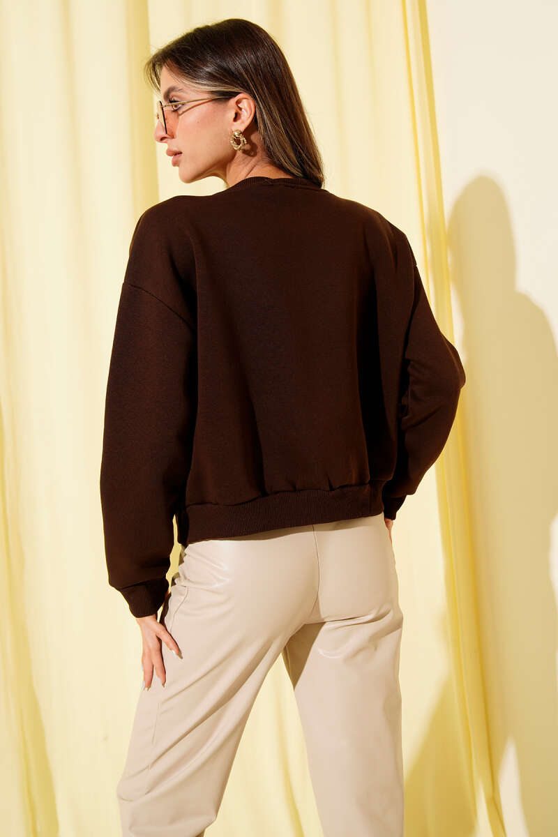 Küçük Kalp Nakışlı Triko Kazak Kahve