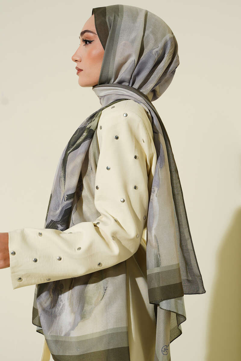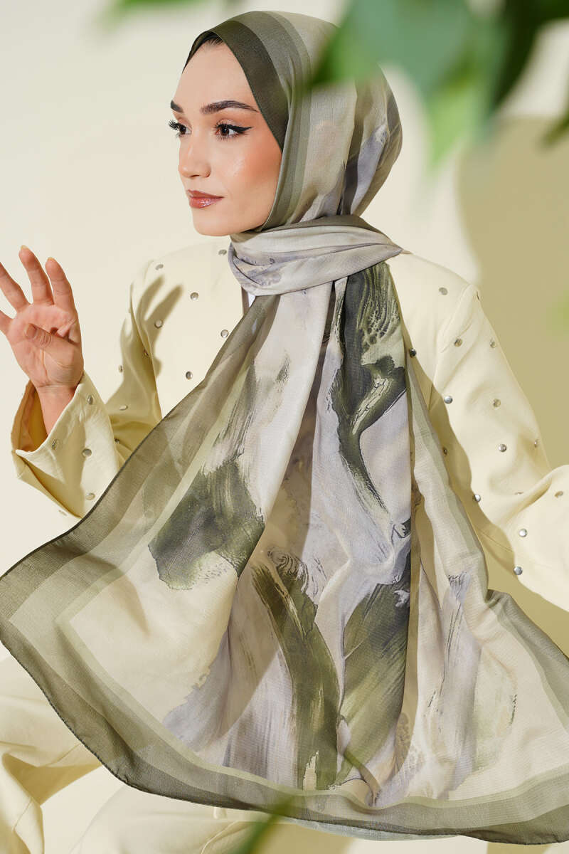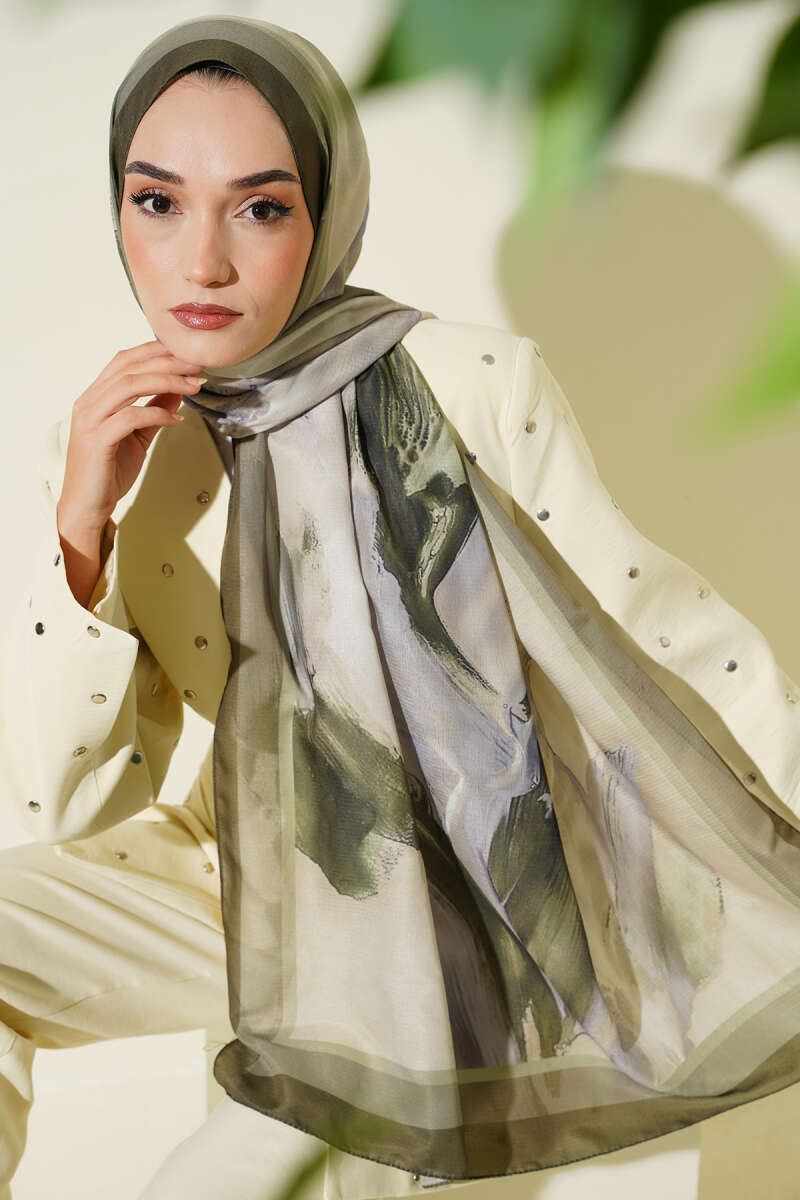 Lina Desenli Soft Şal Haki