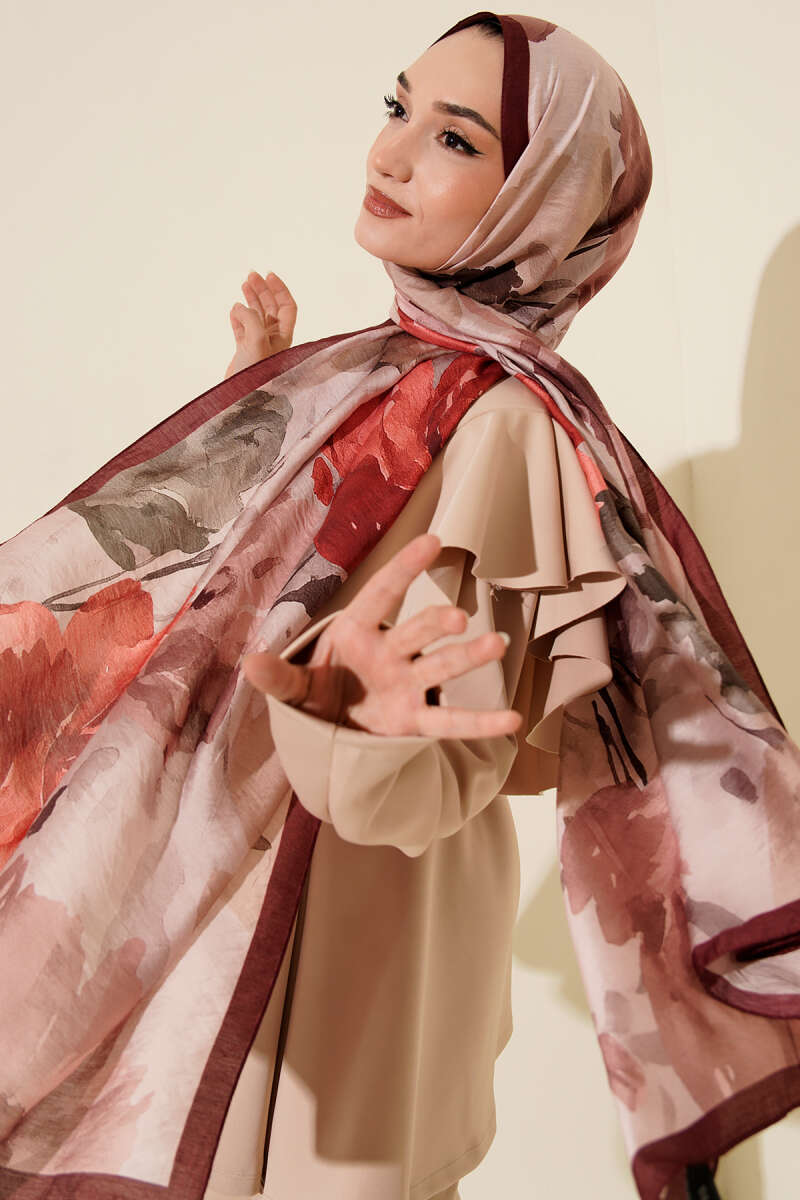 Desenli Acı Kahve Serisi Eşarp Asorti 11