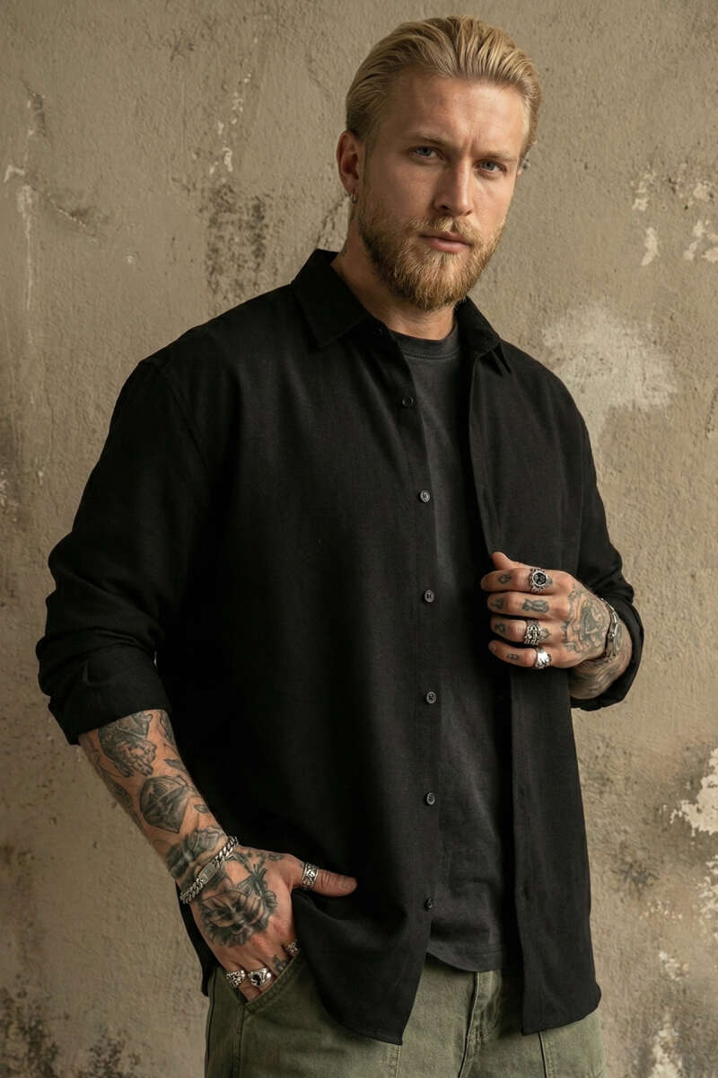 Loose Fit Gabardin Erkek Gömlek Vizon