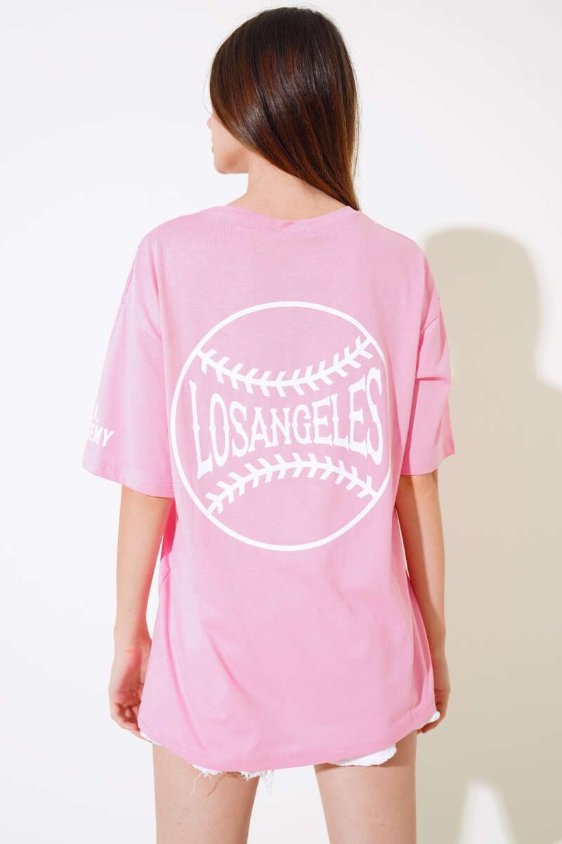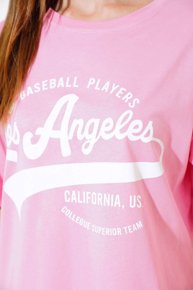 Los Angeles Baskılı Salaş T-shirt Pembe