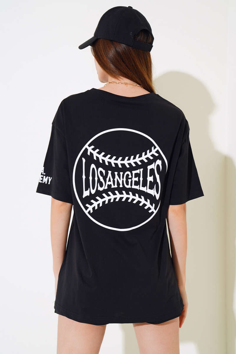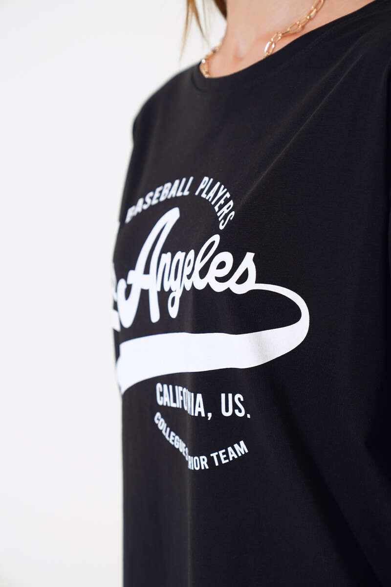 Los Angeles Baskılı Salaş T-shirt Siyah