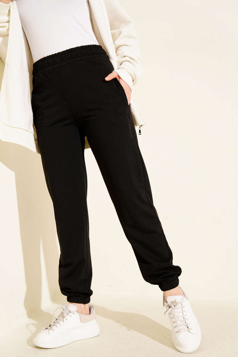 Dar Paça Bel Lastikli Kot Pantolon Siyah