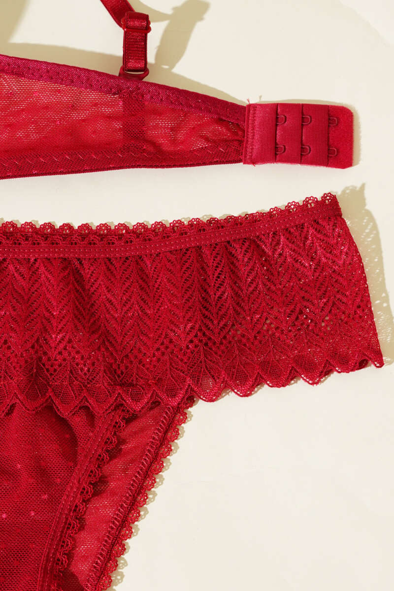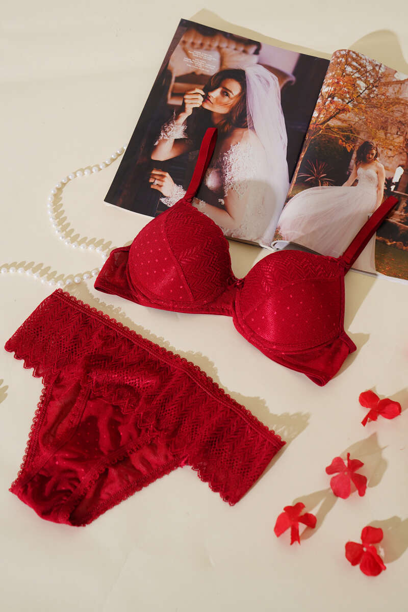 Lotus Destekli Jakar Sütyen Takım Bordo