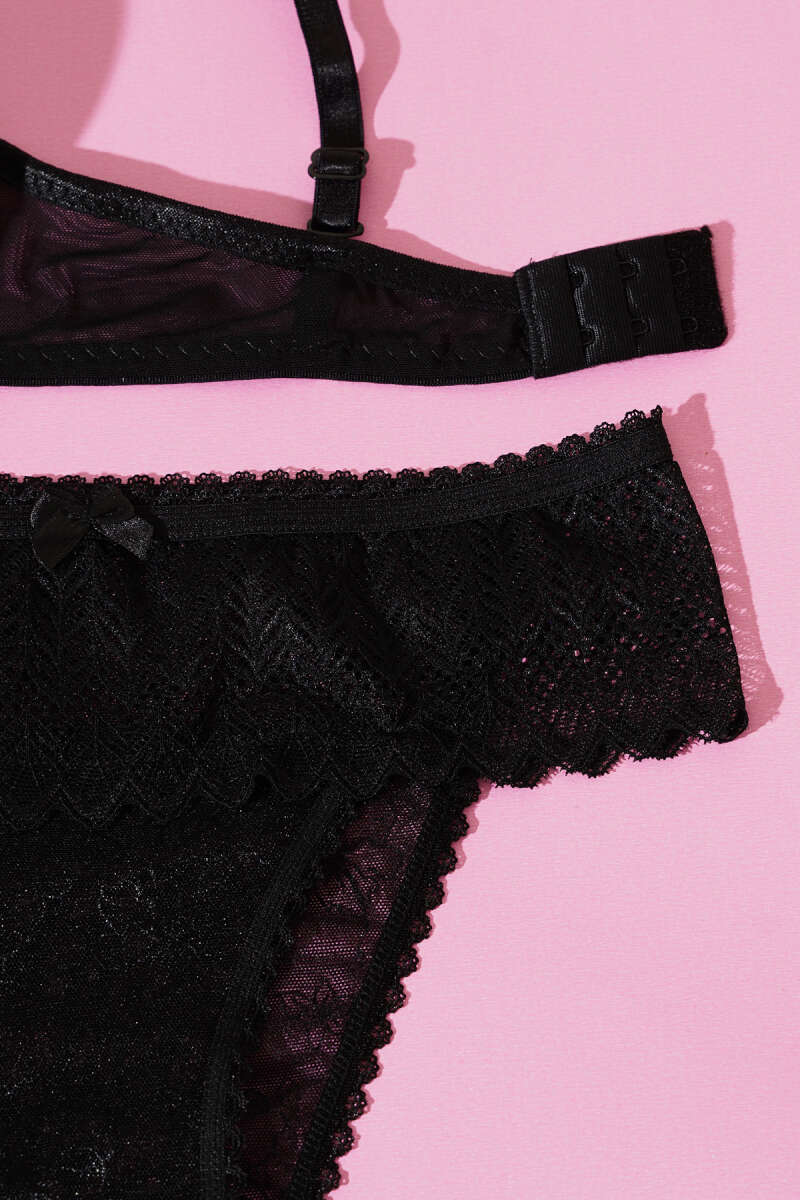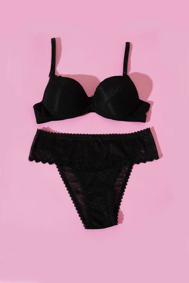 Lotus Destekli Jakar Sütyen Takım Siyah