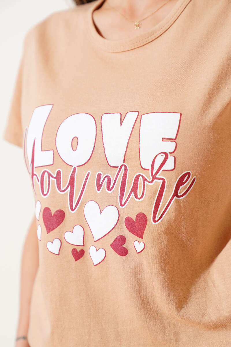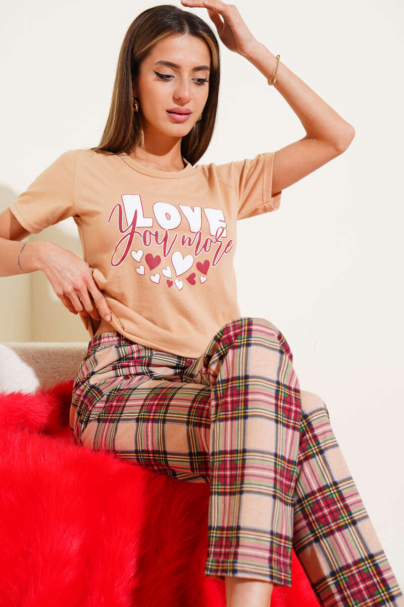 Love Yazılı Kalpli Kısa Kol Pijama Takımı Camel