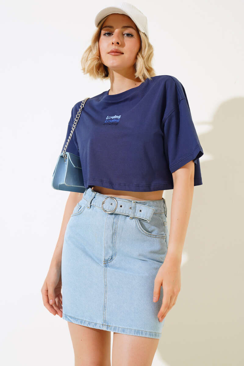 Asimetrik Kabartma Çizgili Triko Tunik Bebe Mavi