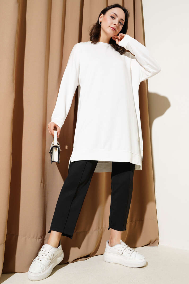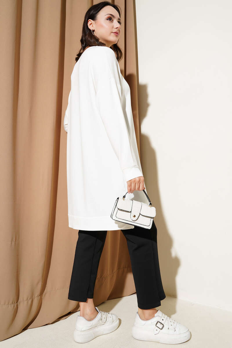 Geniş Bel Lastikli Çımalı Pantolon Beyaz