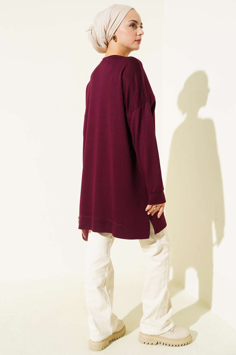 Kolu Taşlı Uzun Triko Tunik Zümrüt
