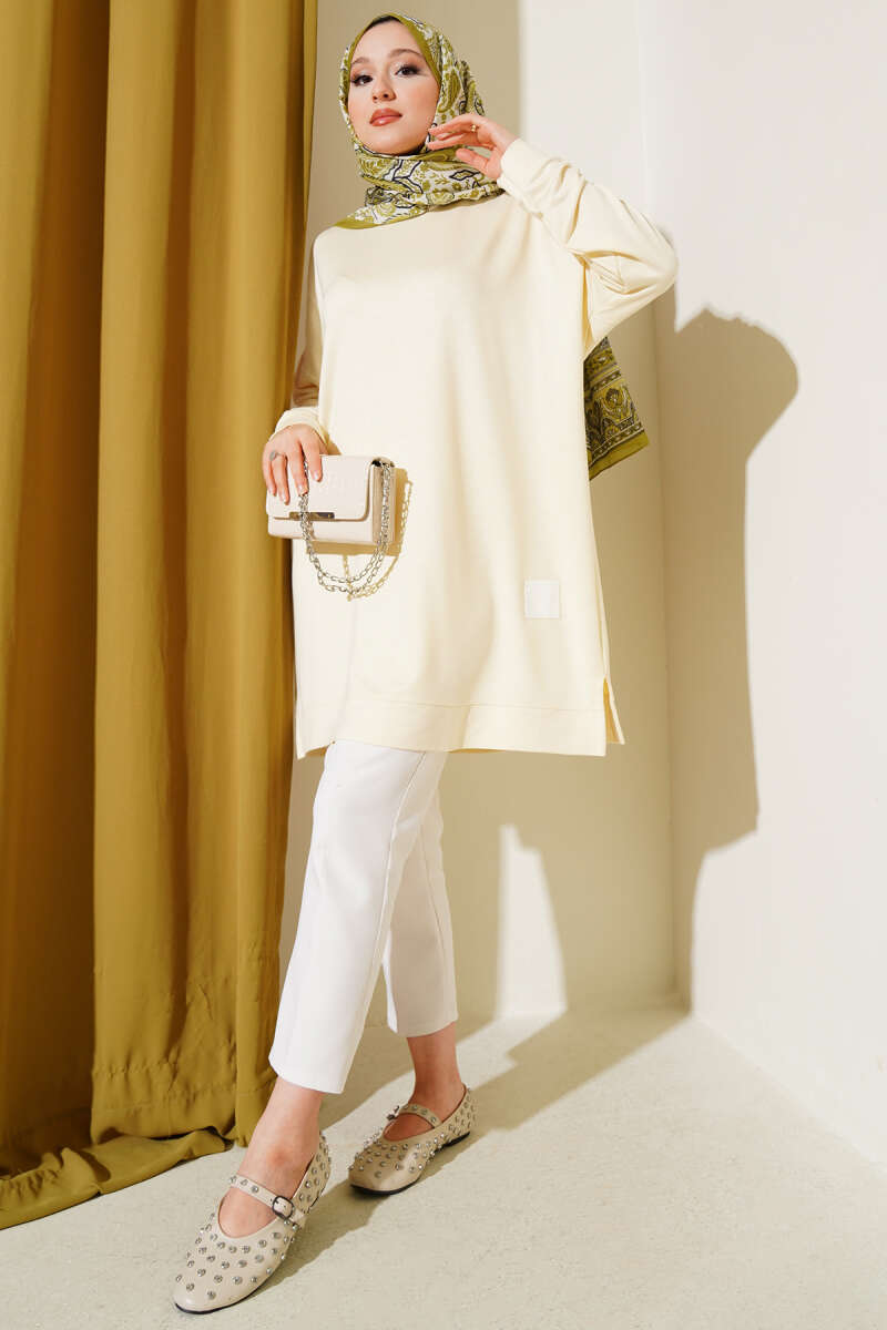 Limon Nakışlı Üç İplik Sweatshirt Ekru