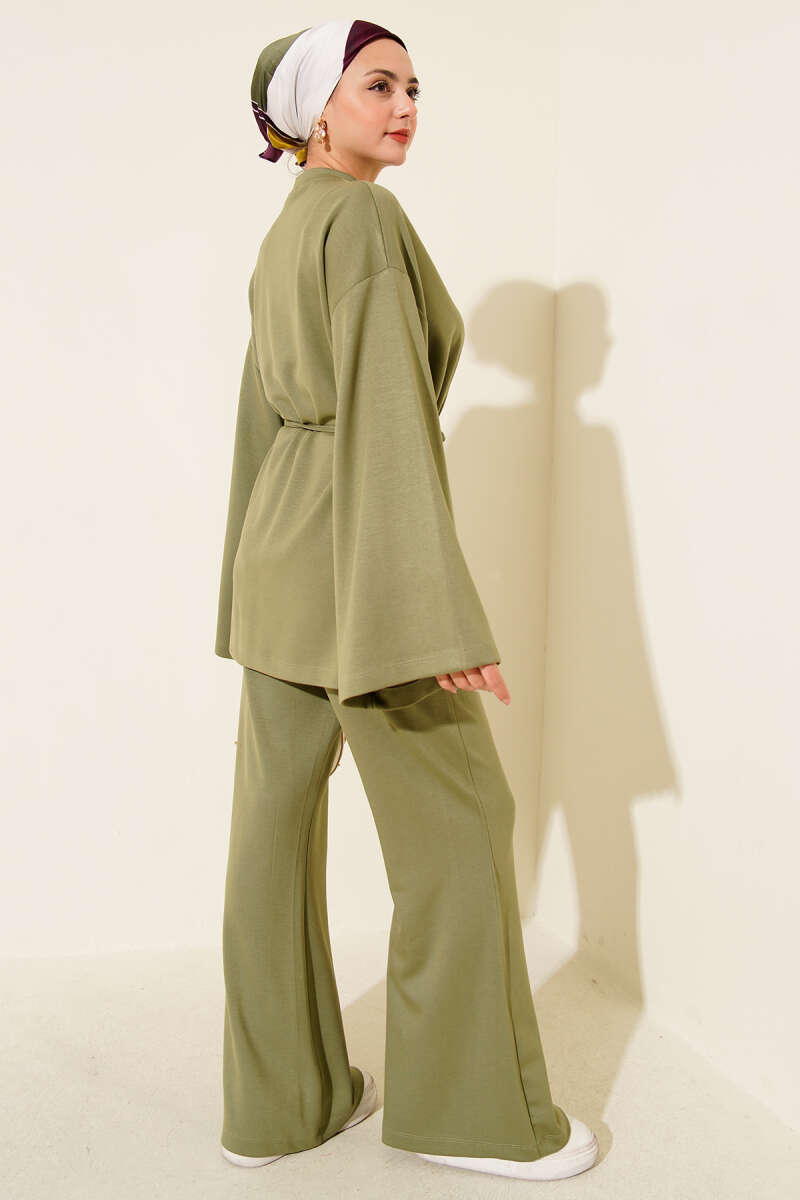 Kol Düğme Detaylı Triko Hırka Yağ Yeşili