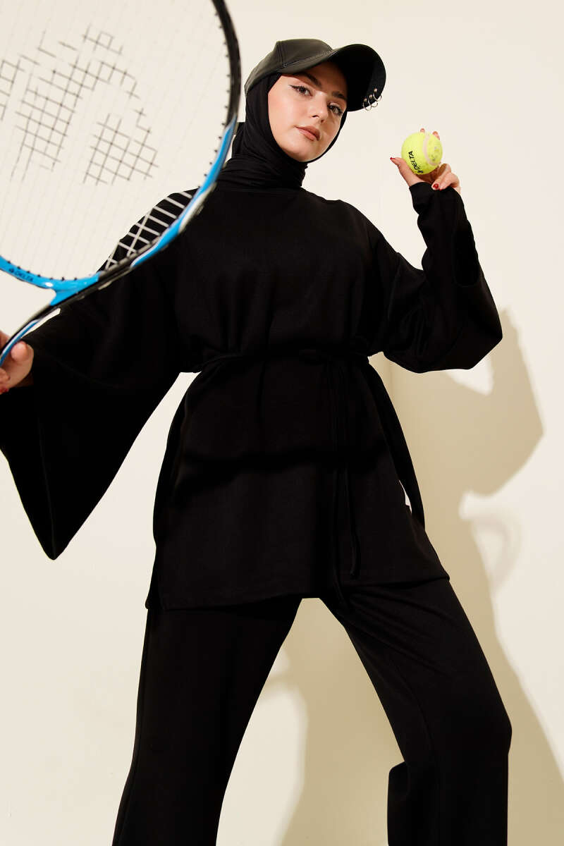 Loyşa Yarım Fermuar Detaylı İkili Takım Siyah