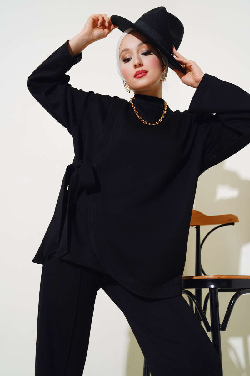 Loyşa Asimetrik Kesim İkili Takım Siyah