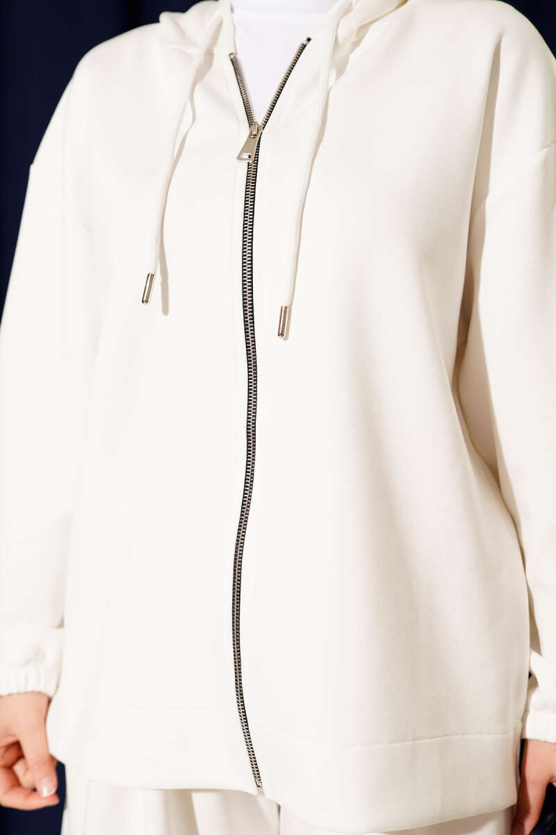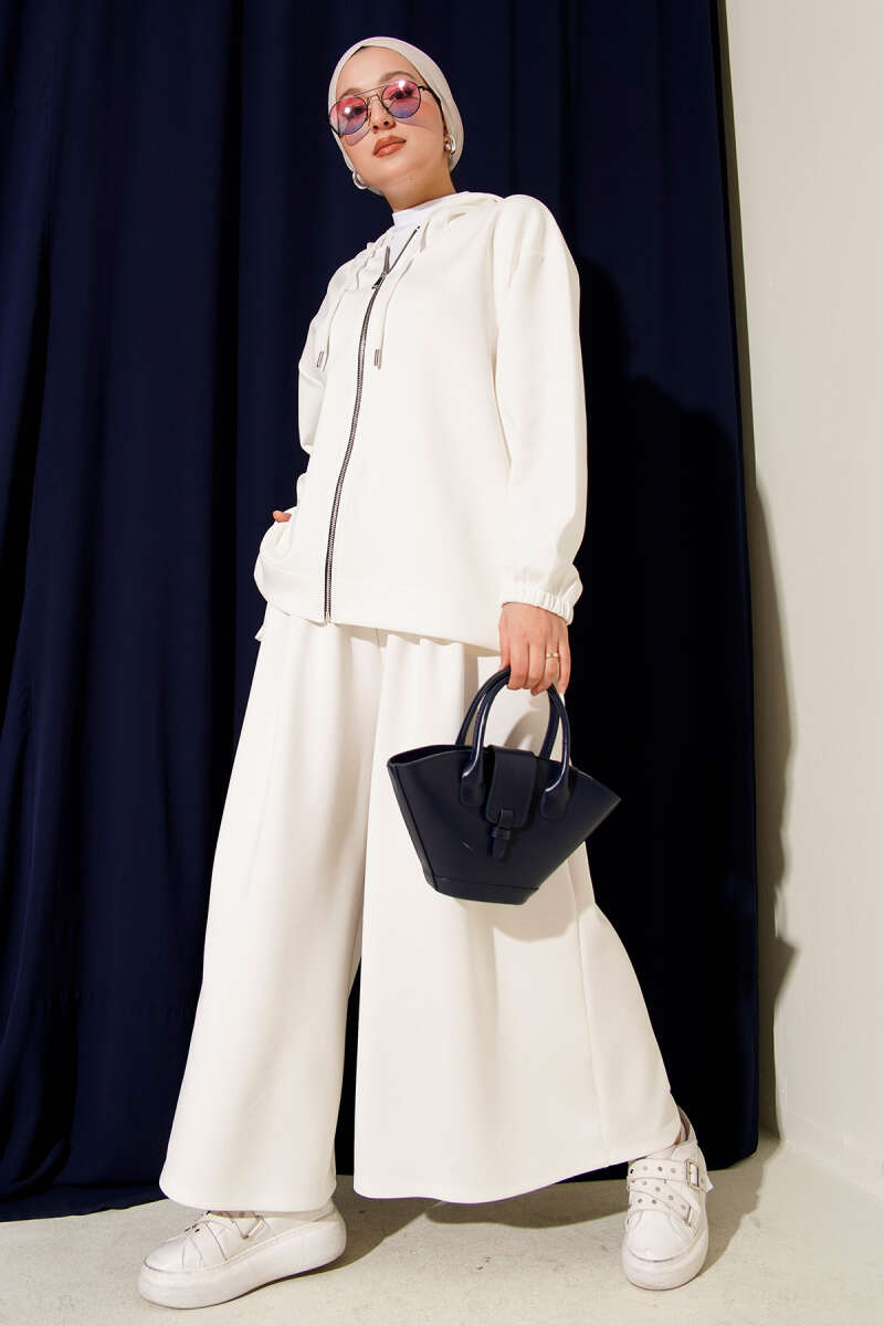 Loyşa Basic Fermuarlı Kapüşonlu İkili Takım Beyaz