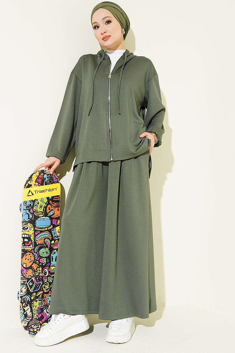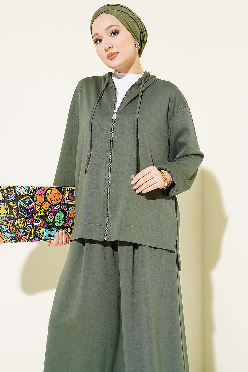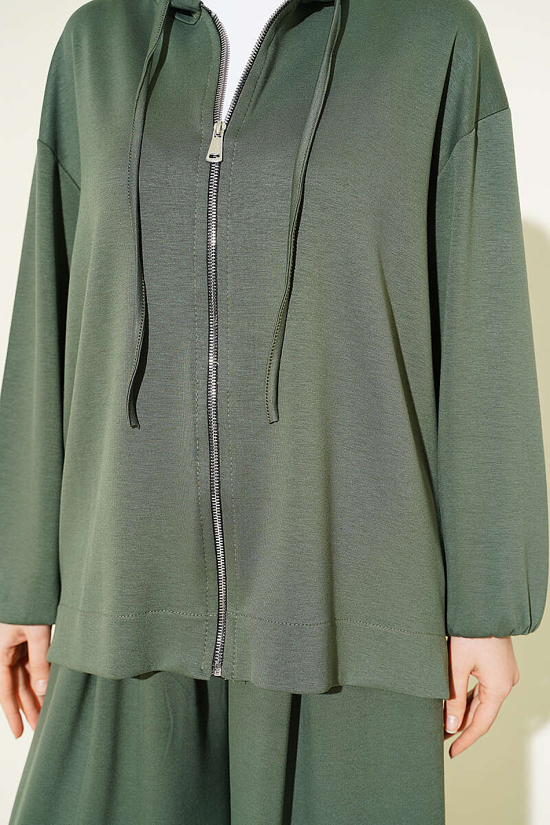 Loyşa Basic Fermuarlı Kapüşonlu İkili Takım Haki