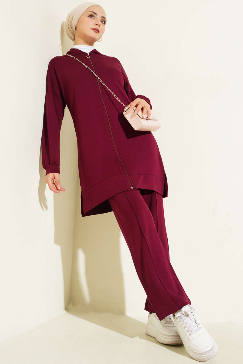 Loyşa Basic Kapüşonlu İkili Takım Bordo