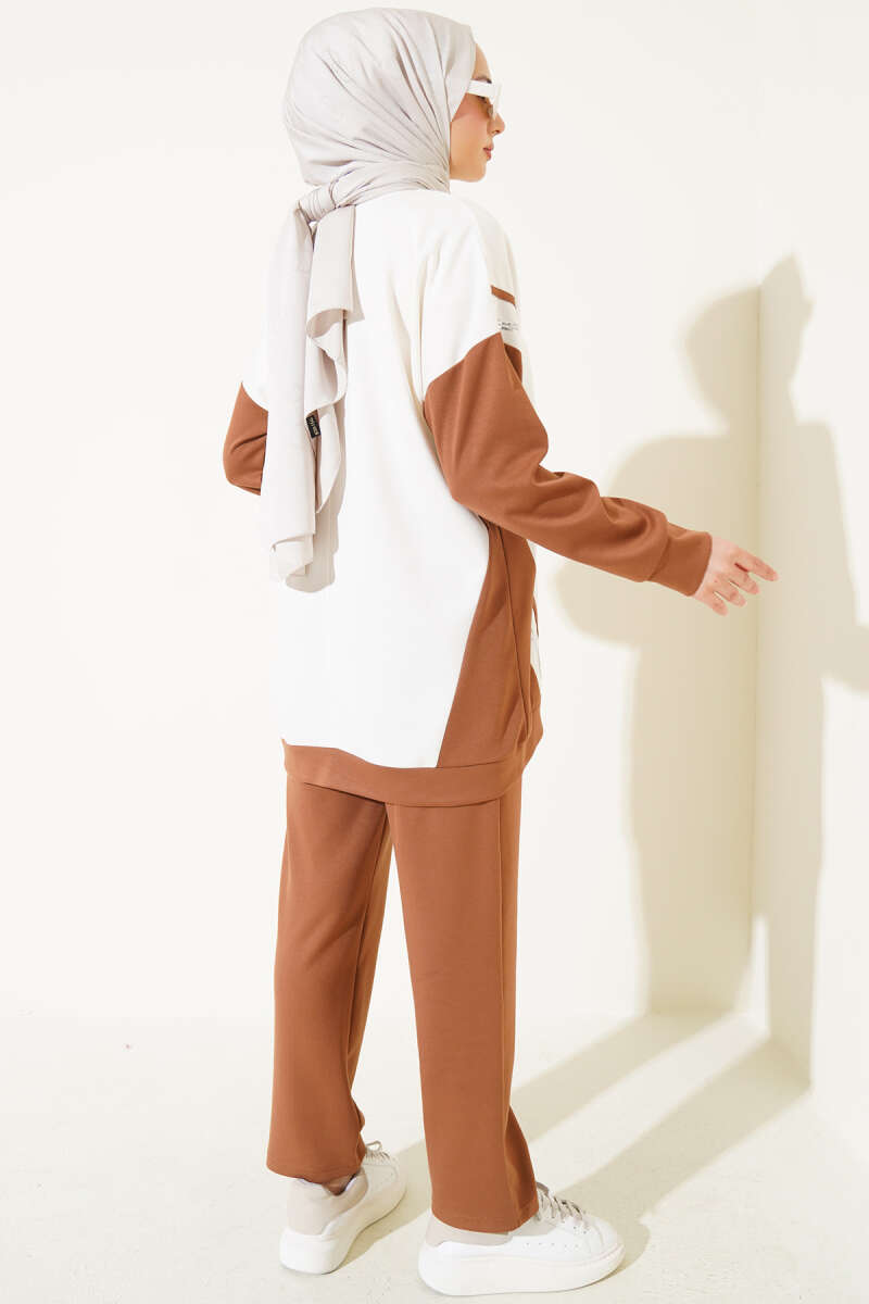 Önü Çımalı Tunik İkili Takım Acı Kahve