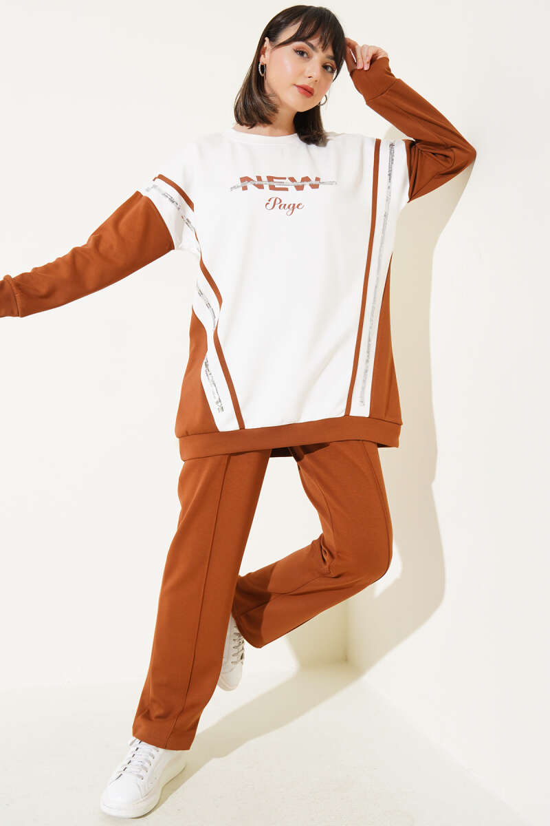 Önü Çımalı Tunik İkili Takım Acı Kahve