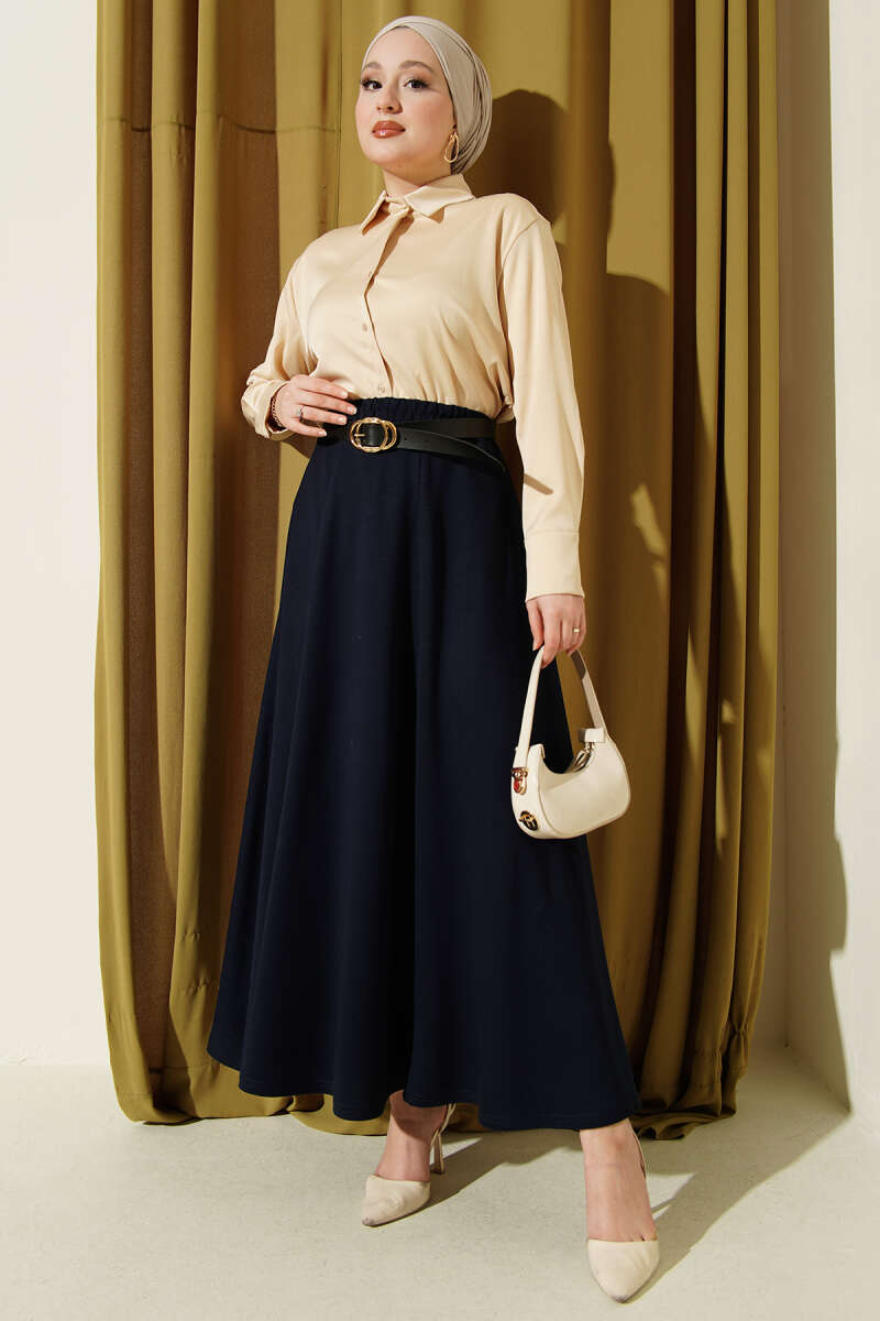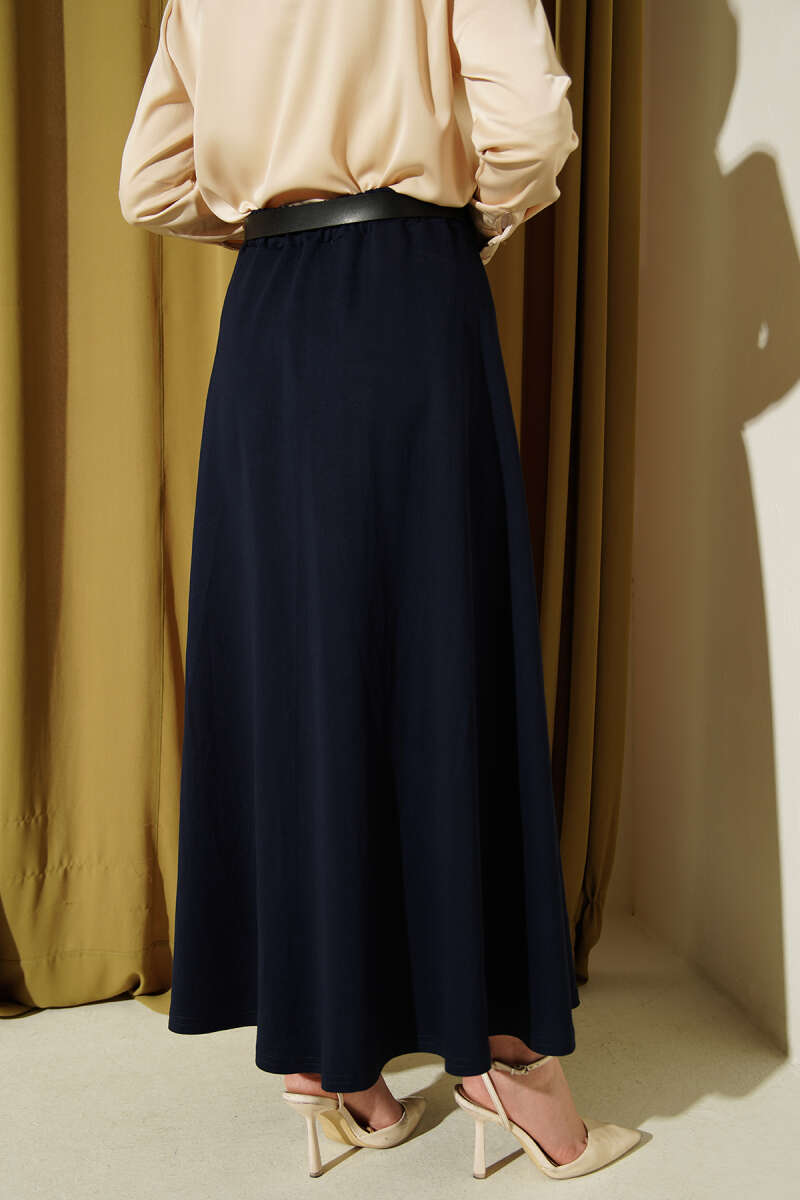 Loyşa Bel Lastikli Kemerli Etek Lacivert