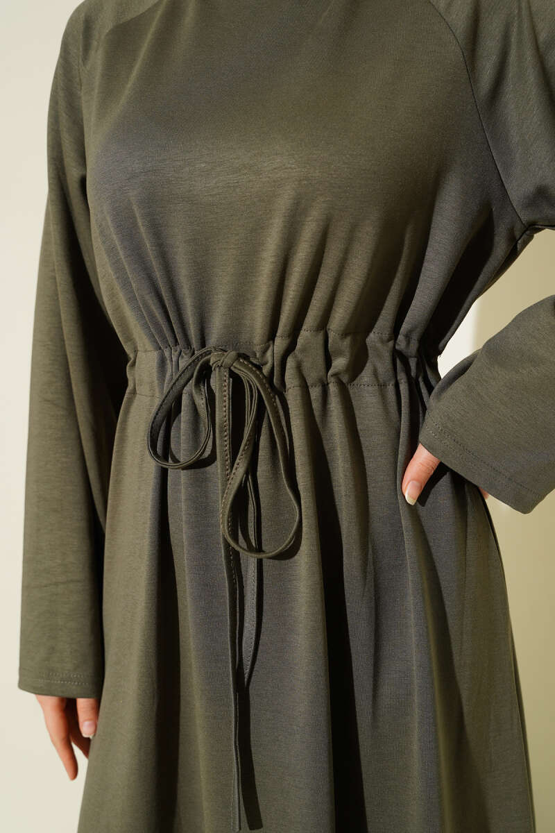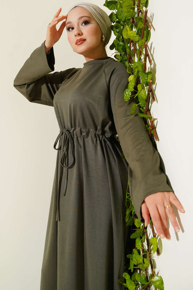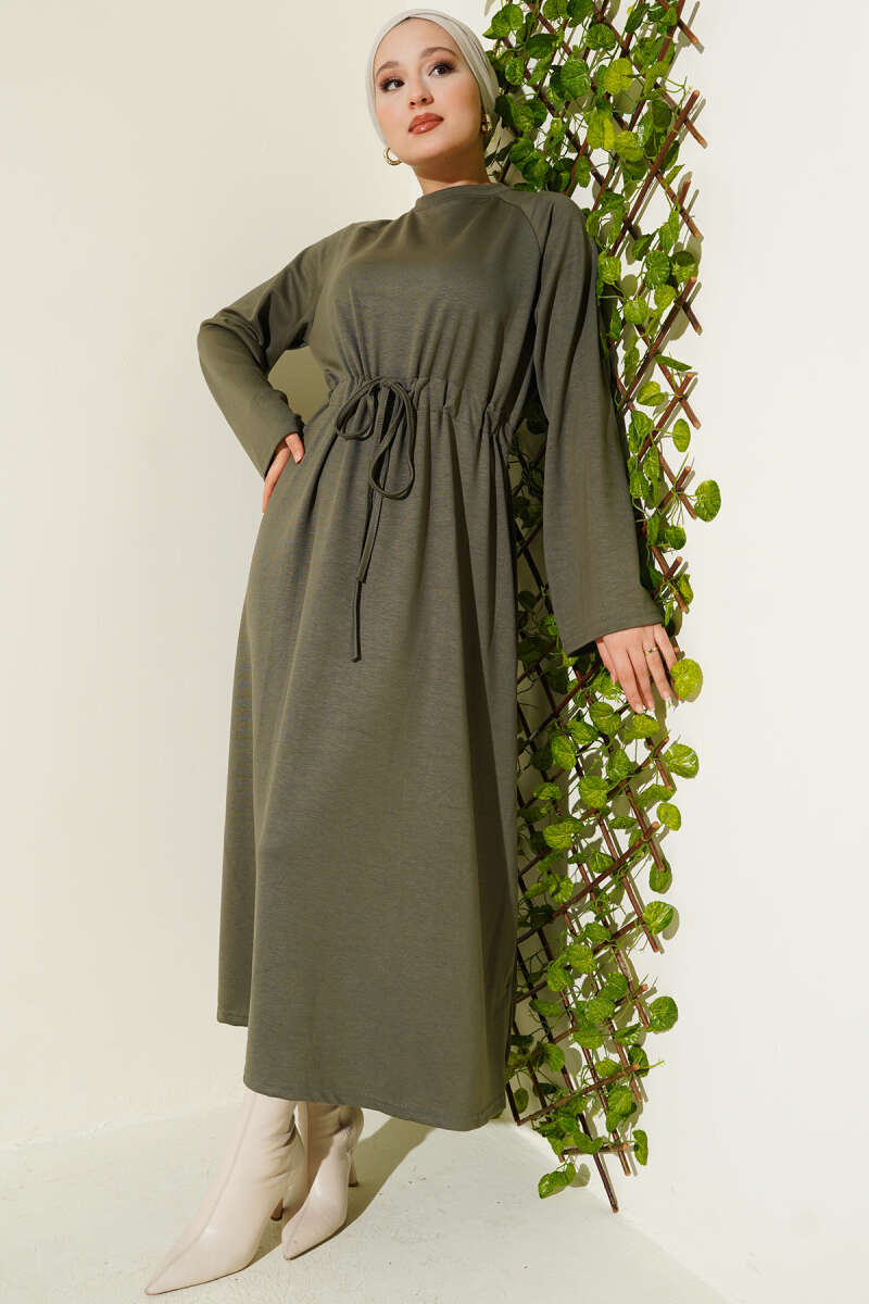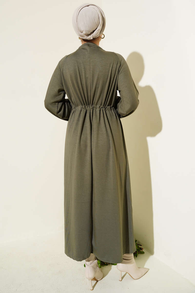 Sıra Taşlı Balon Kol Abiye Elbise Haki