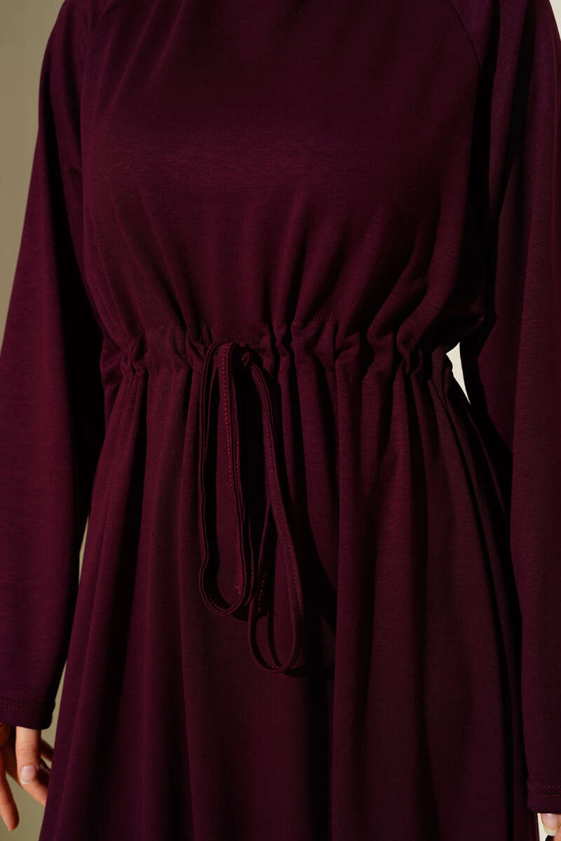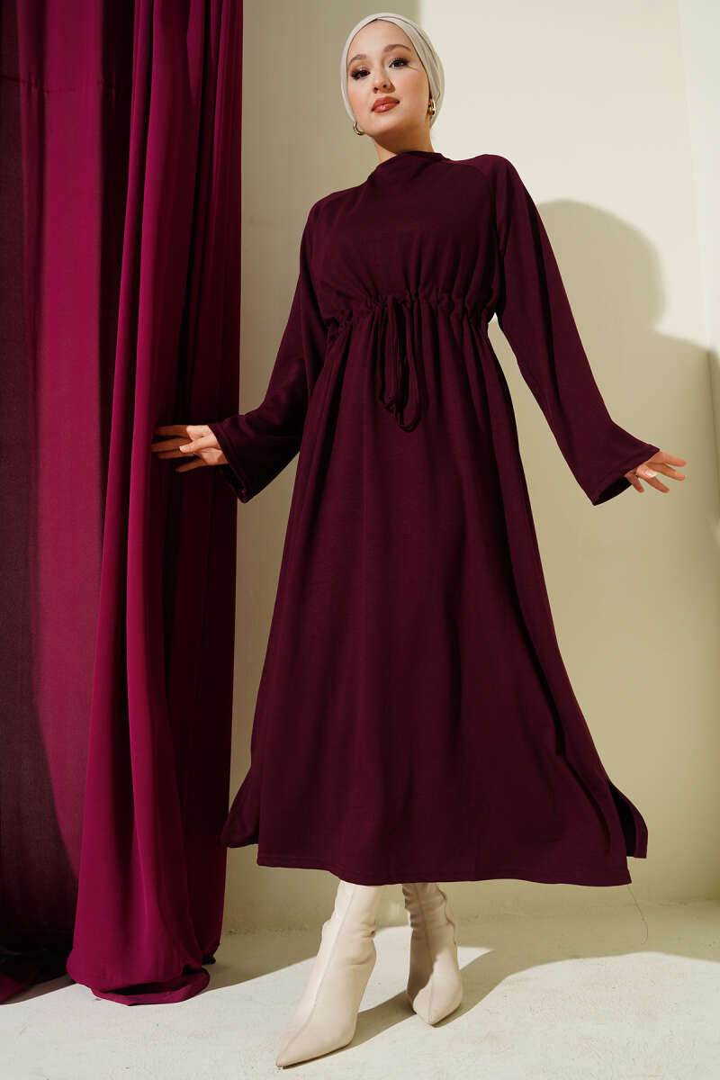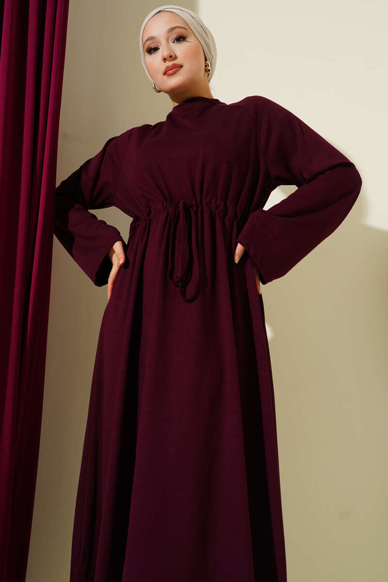 Sıra Taşlı Balon Kol Abiye Elbise Bordo
