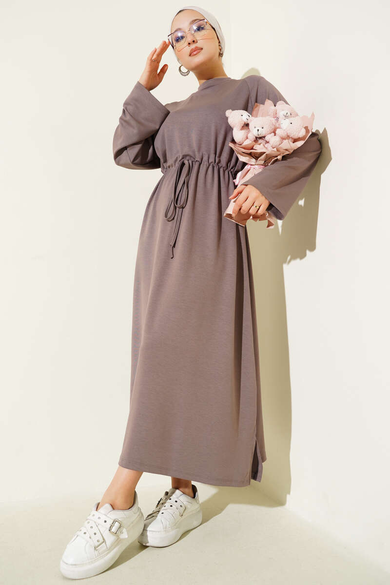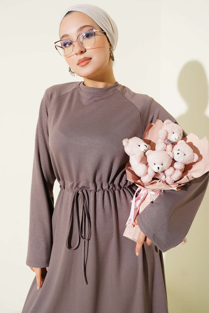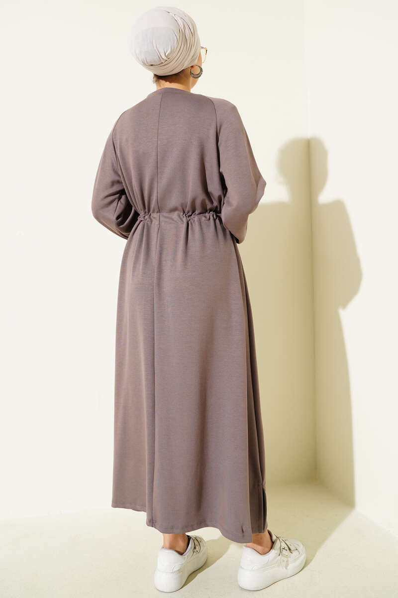 Yakası Yarım Fermuarlı Triko Elbise Füme