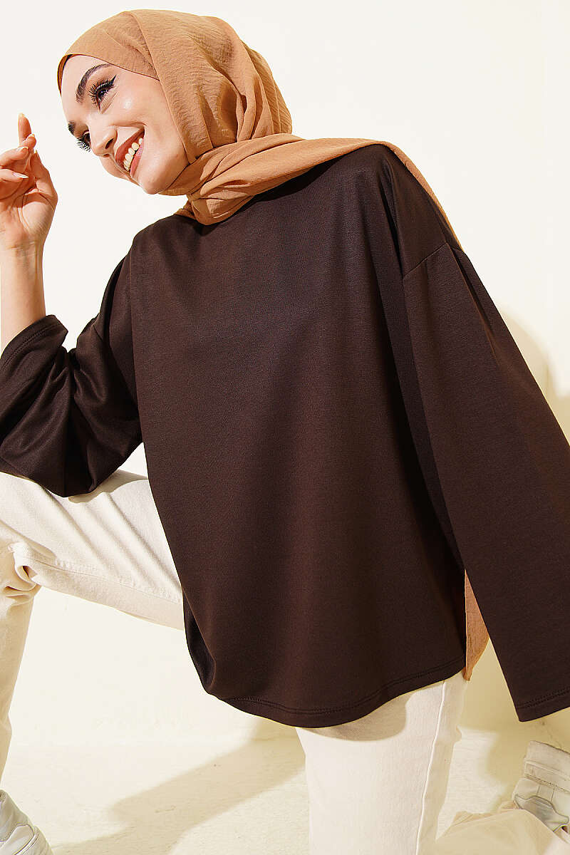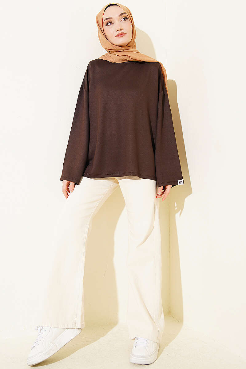 Loyşa Bilek Armalı Basic Bluz Acı Kahve