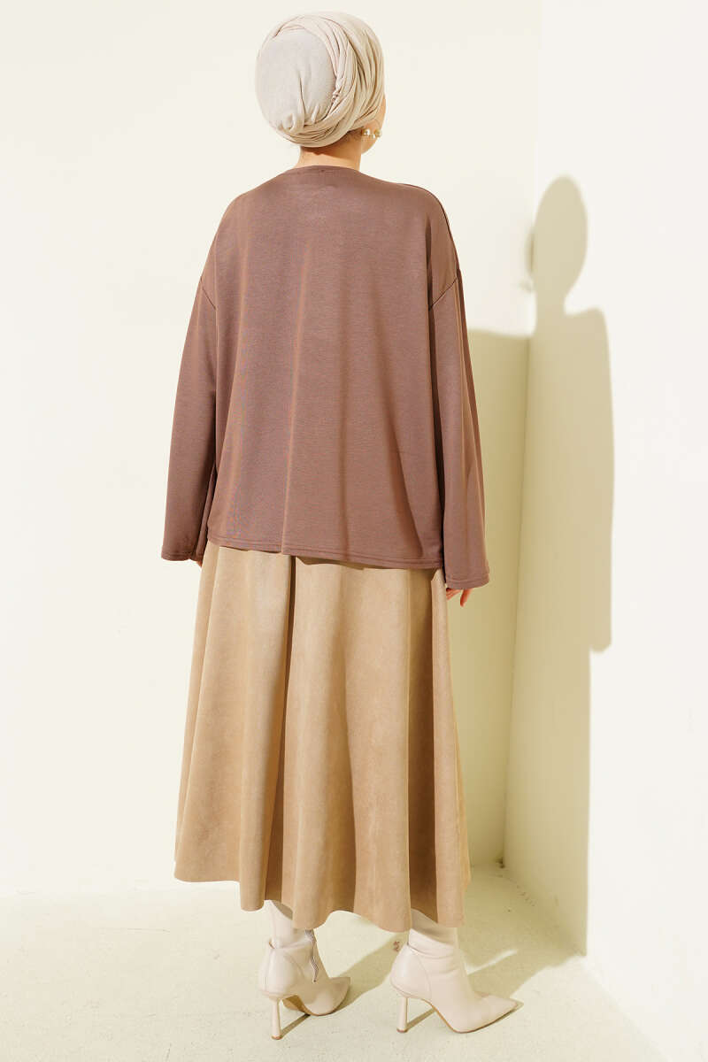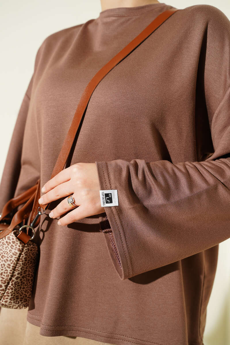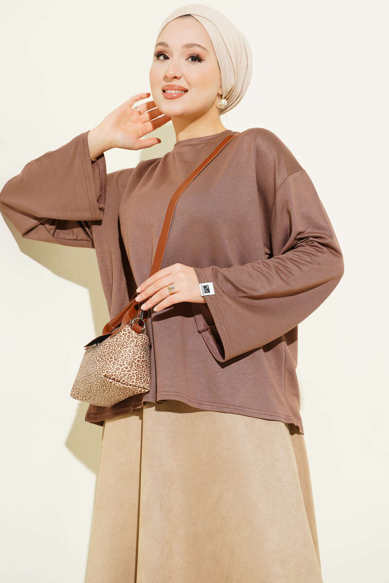 Bilek İpli Fitilli Kaşe Tunik Kahve