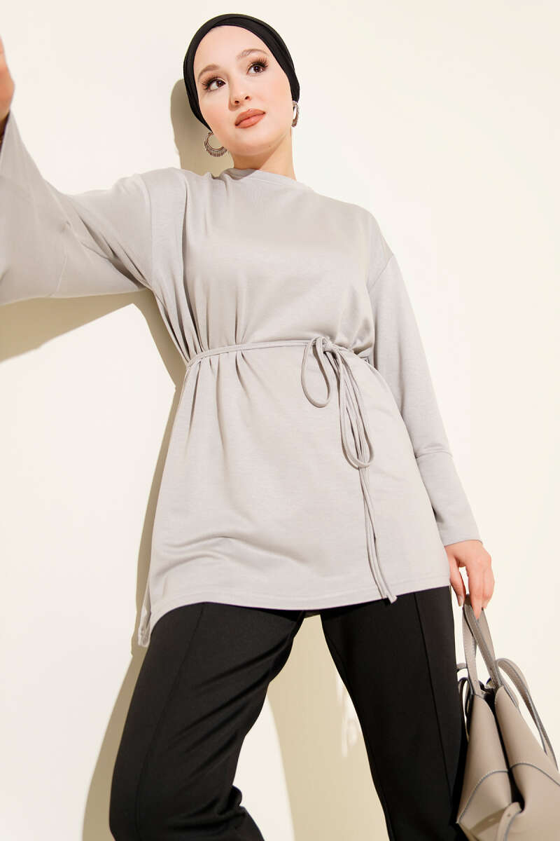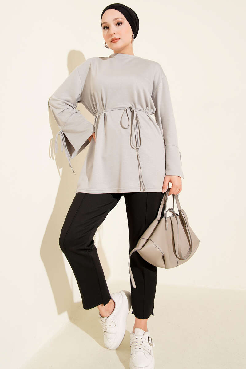 Loyşa Bilek İp Bağlamalı Tunik Gri