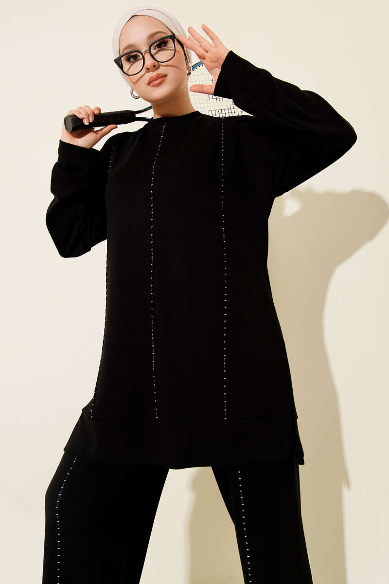 Loyşa Dikiş Detaylı İkili Takım Siyah
