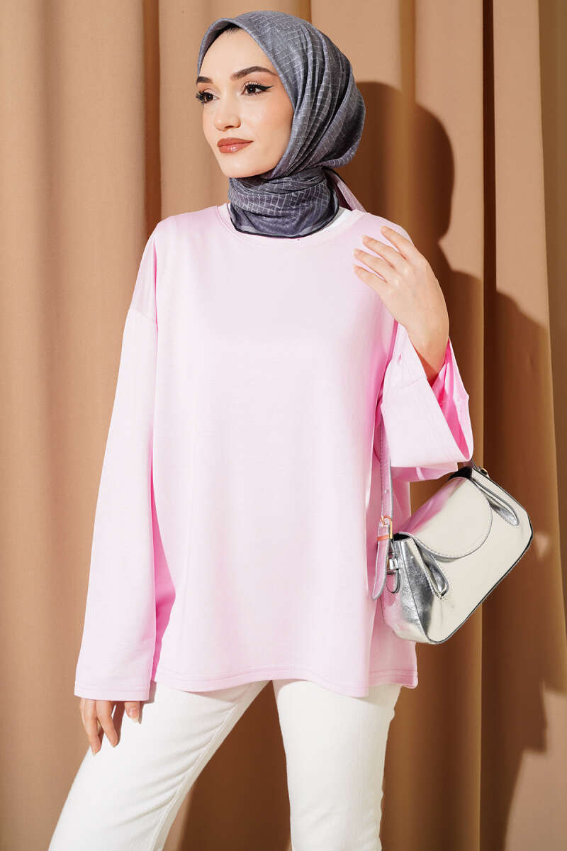 Yarasa Kol Basic Loyşa Tunik Pembe