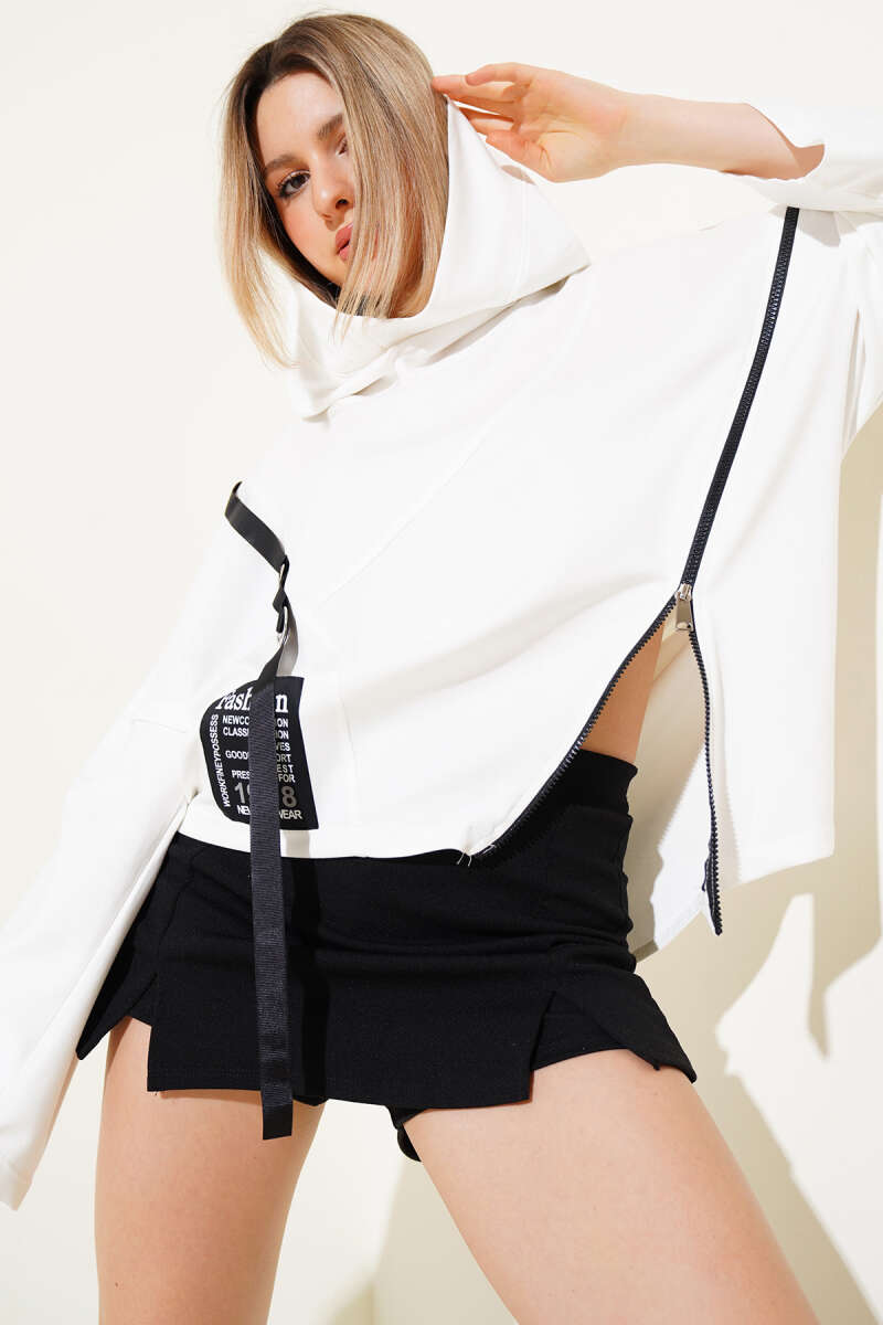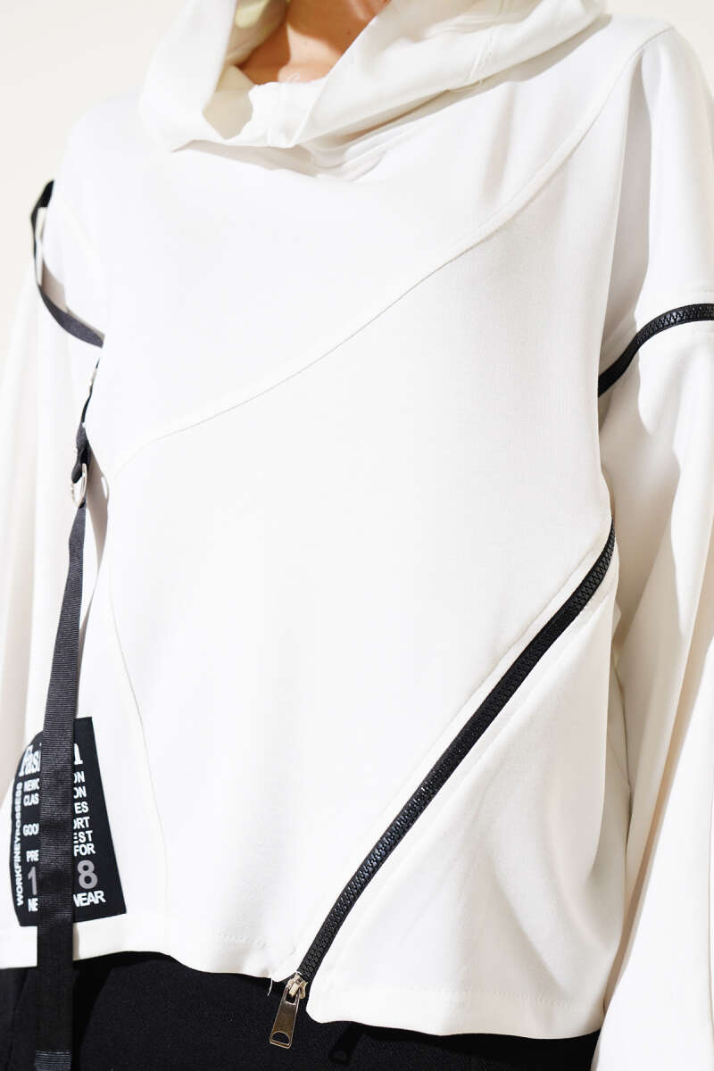 Fırfır Süslemeli Hakim Yaka Beyaz Tunik